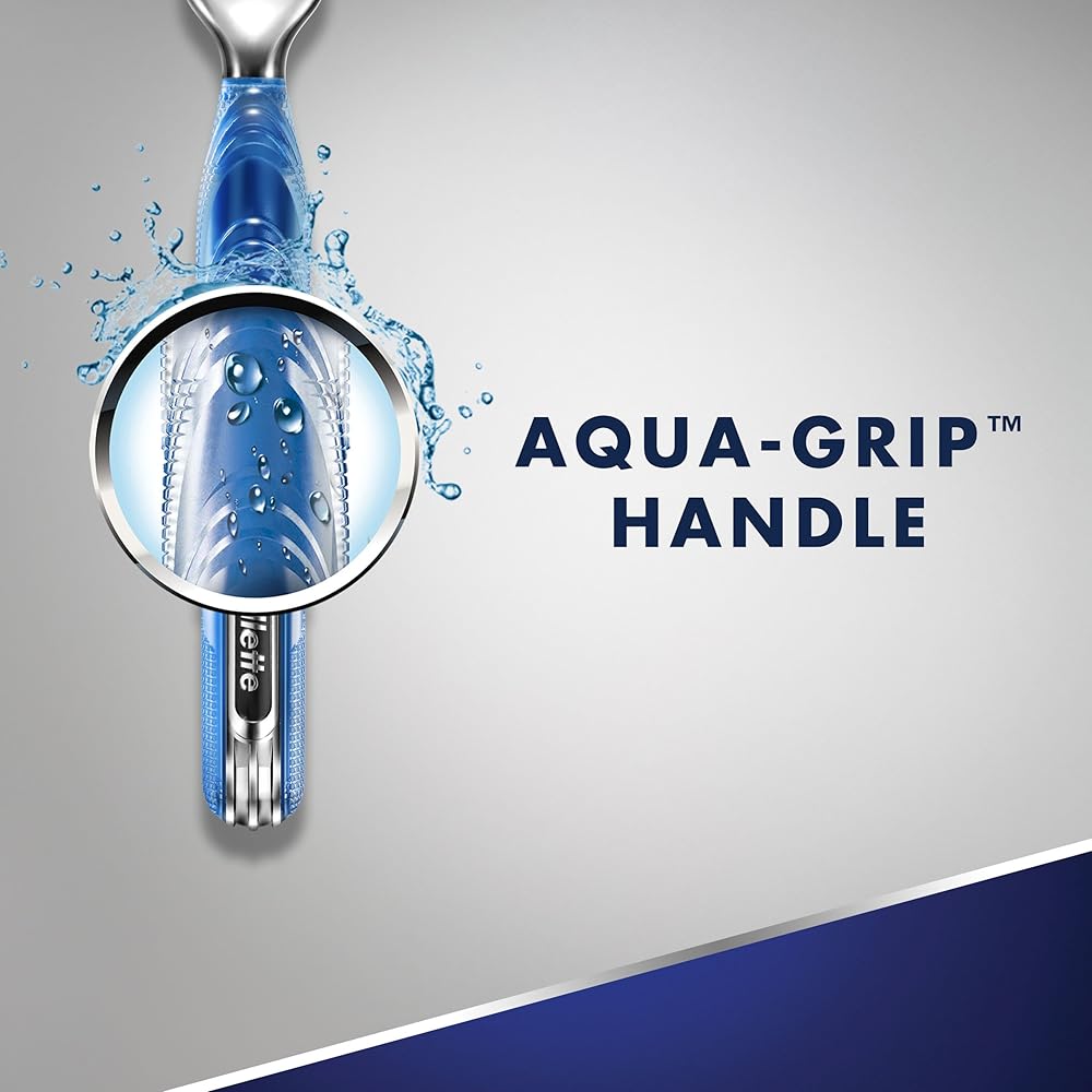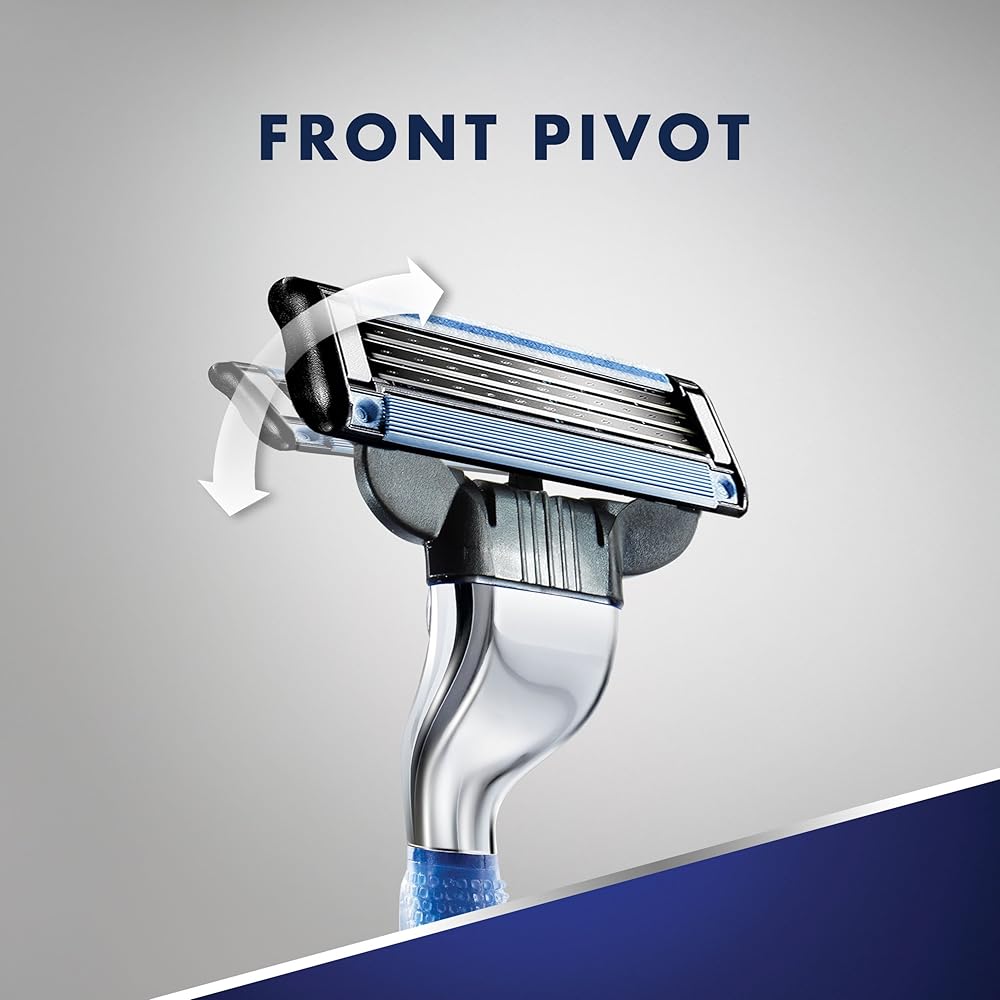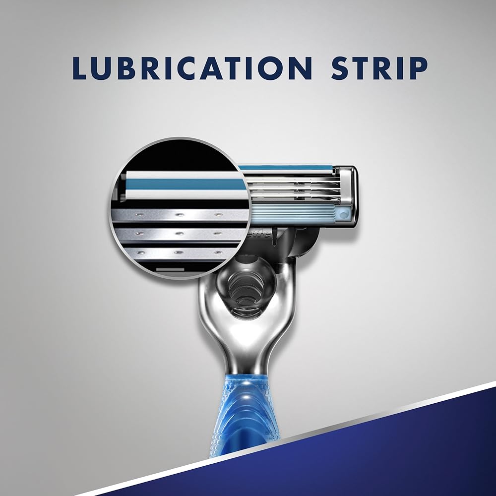 • يساعد شريط التشحيم على انزلاق ماكينة الحلاقة جيليت ثلاثية الشفرات على بشرتك بشكلٍ مريح.