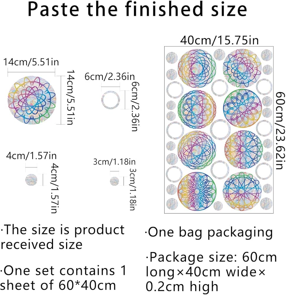 • ♥Good Choice For Decoration: Whether you are looking for decorations that can both decorate your windows or grass and save birds from window collisions? This boho rainbow sun window cling decals will be a good choice for you. They can be used as birthday gifts, Children's Day gifts, Christmas gifts....