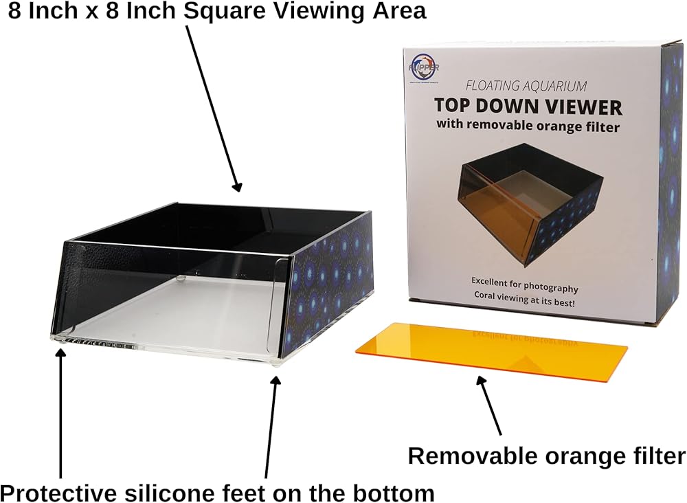 يعد Flipper Top Down Viewer مثاليًا لفحص مجموعة متنوعة من كائنات المياه العذبة والمياه المالحة بما في ذلك المرجان والروبيان وغيرها من الحياة البحرية الجذابة، وهو مثالي لتعزيز التصوير الفوتوغرافي للدبابات. تتضمن الحزمة مرشحًا برتقاليًا يضمن، عند تطبيقه، رؤية واضحة ومصححة الألوان، مما يسمح لك بالتقاط صور مذهلة لسكانك المائيين بوضوح ملحوظ.