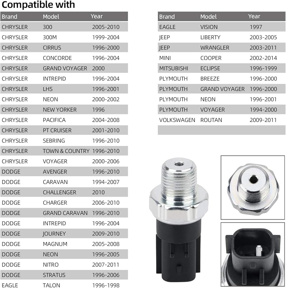 5149098AA 12611500893 مفتاح ضغط زيت المحرك ووحدة الإرسال متوافقة مع كرايسلر دودج جيب ميني فولكس فاجن ميتسوبيشي بليموث إيجل PS278 PS712