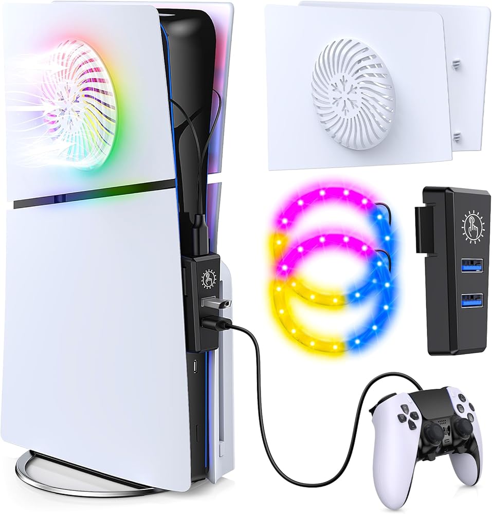 (5) Extend the power cable of the LED light ring along the front of the game console, and insert the Type-C interface of the cable into the top Type-C interface of the HUB equip with the product.