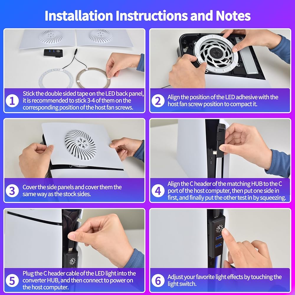 (3) Attach the LED light strip ring along the edge of the cooling fan of the game.