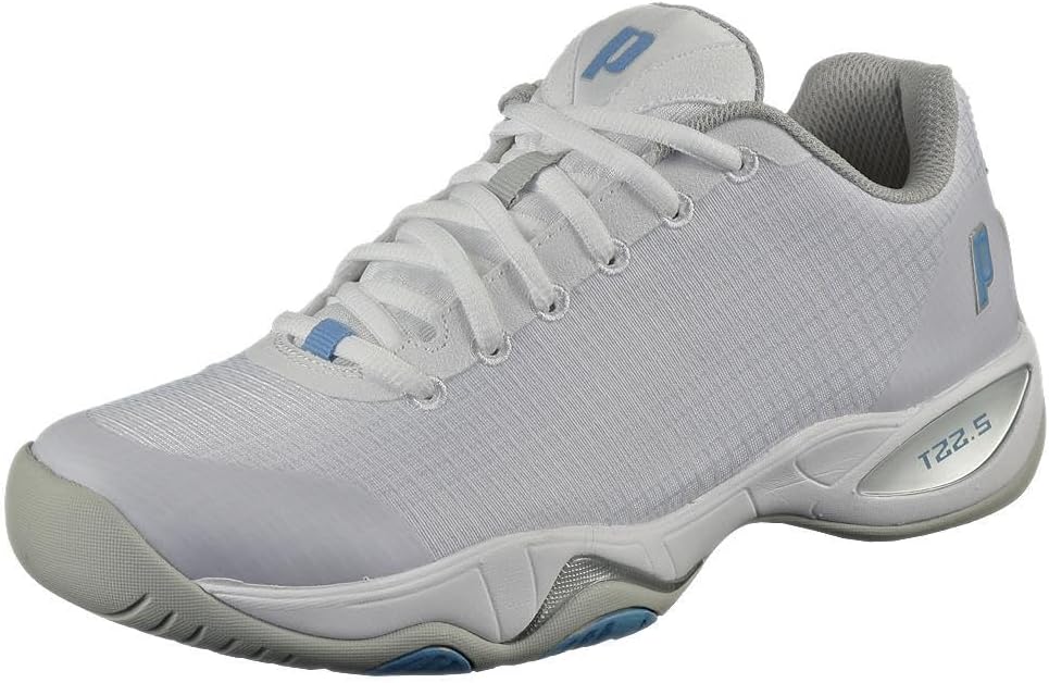A favourite for many years has been redesigned but maintains the same great durable performance. The Prince T22.5 Shoe now features a new breathable upper that is more flexible but doesn't compromise on support. The EVA Midsole features Prince's Shockeraser Heel Insert to attenuate through your steps. The T22.5 outsole is made of PRC 1000 Durable Rubber that features a herringbone tread pattern so you can take these shoes on any court surface with confidence.