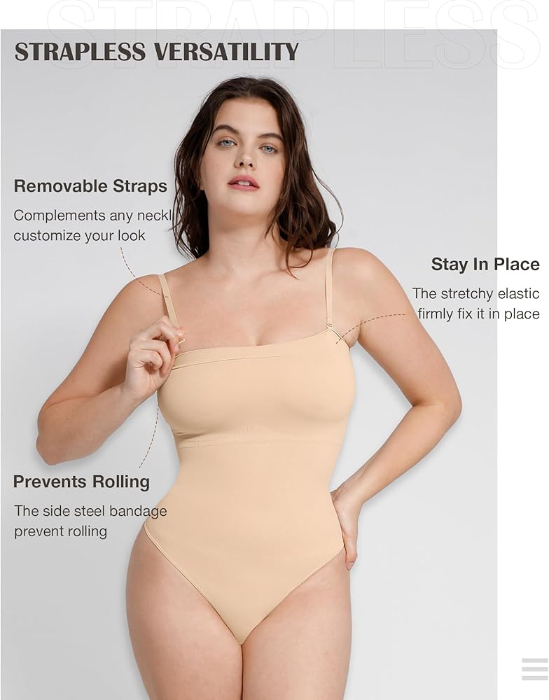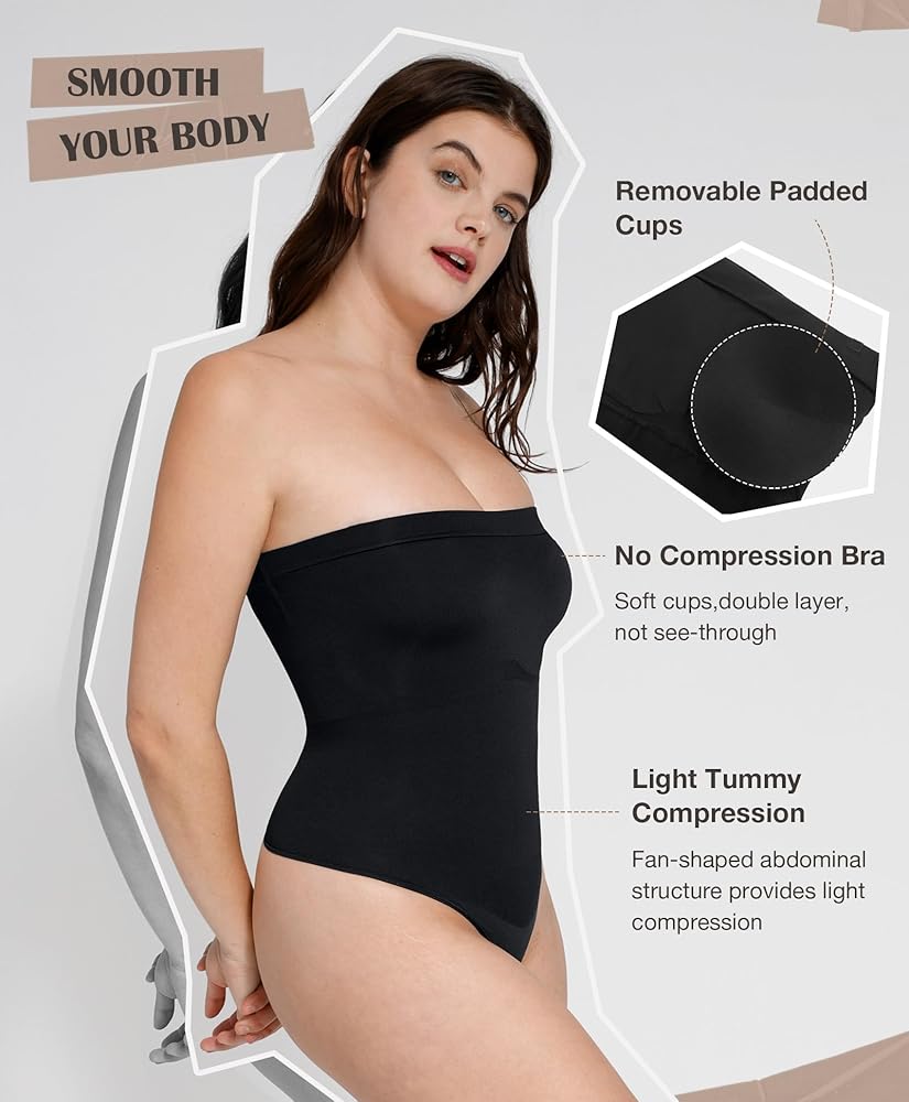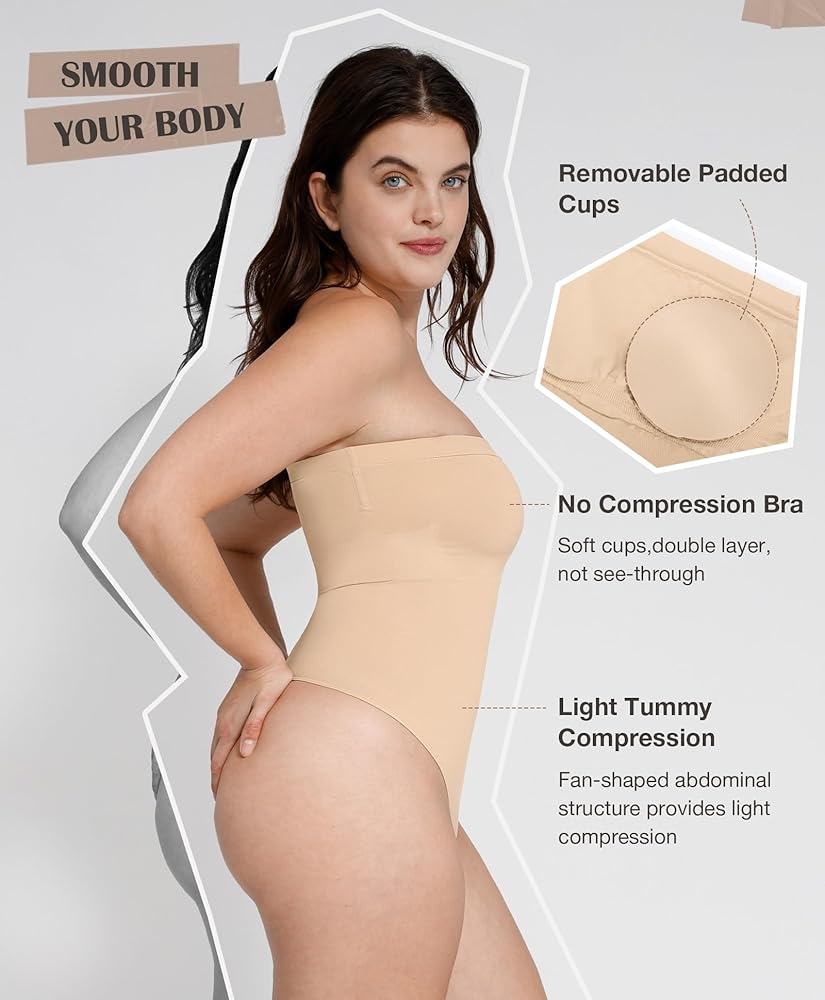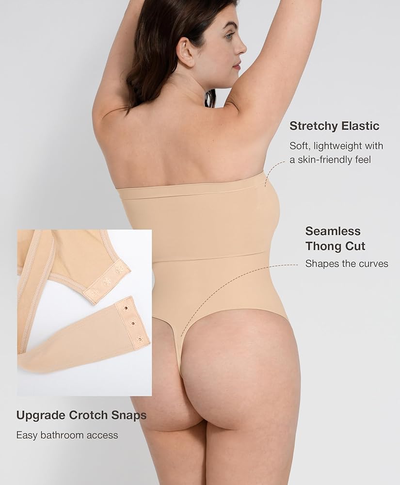 VERSATILE ALL-DAY WEAR-Perfect for daily wear or under dresses. Suitable for all occasions and activities. Achieve your dream figure and accentuate your natural curves with the figure-flattering, ultra-comfortable Lover-Beauty Strapless Thong Bodysuit.