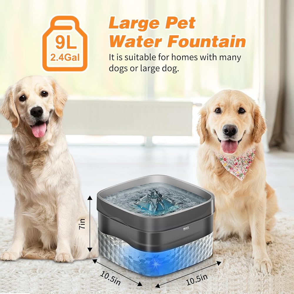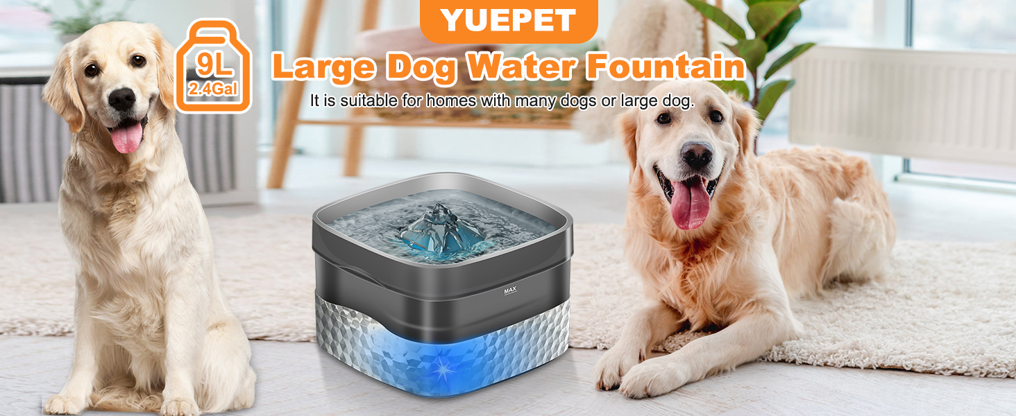 نافورة مياه للكلاب الكبيرة من يوبيت، سعة 2.4 جالون/9 لتر، نافورة مياه كبيرة للحيوانات الأليفة مع مضخة آمنة، نافورة مياه للكلاب فائقة الهدوء تلقائيًا للقطط والكلاب