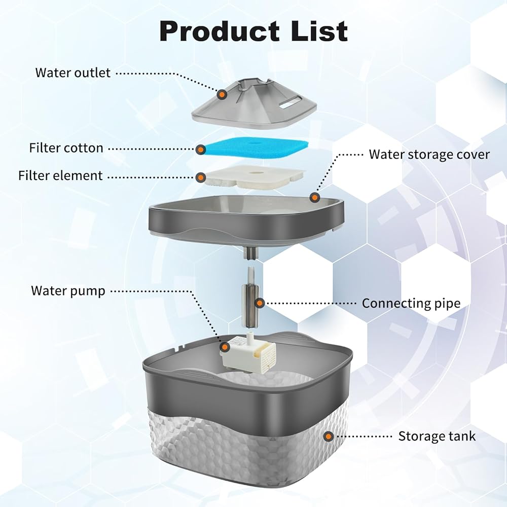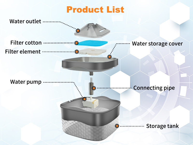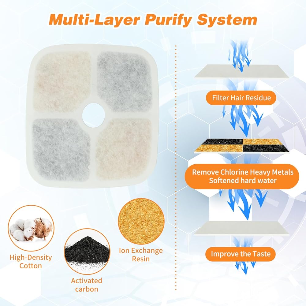 【ترشيح ثلاثي】يتكون نظام الترشيح لموزع مياه الحيوانات الأليفة هذا من الكربون المنشط عالي الكثافة وراتنج تبادل العينات، مما يزيل الشوائب والكلور بشكل فعال من الماء ويخفف الماء. توفير مياه نظيفة وصحية للحيوانات الأليفة.