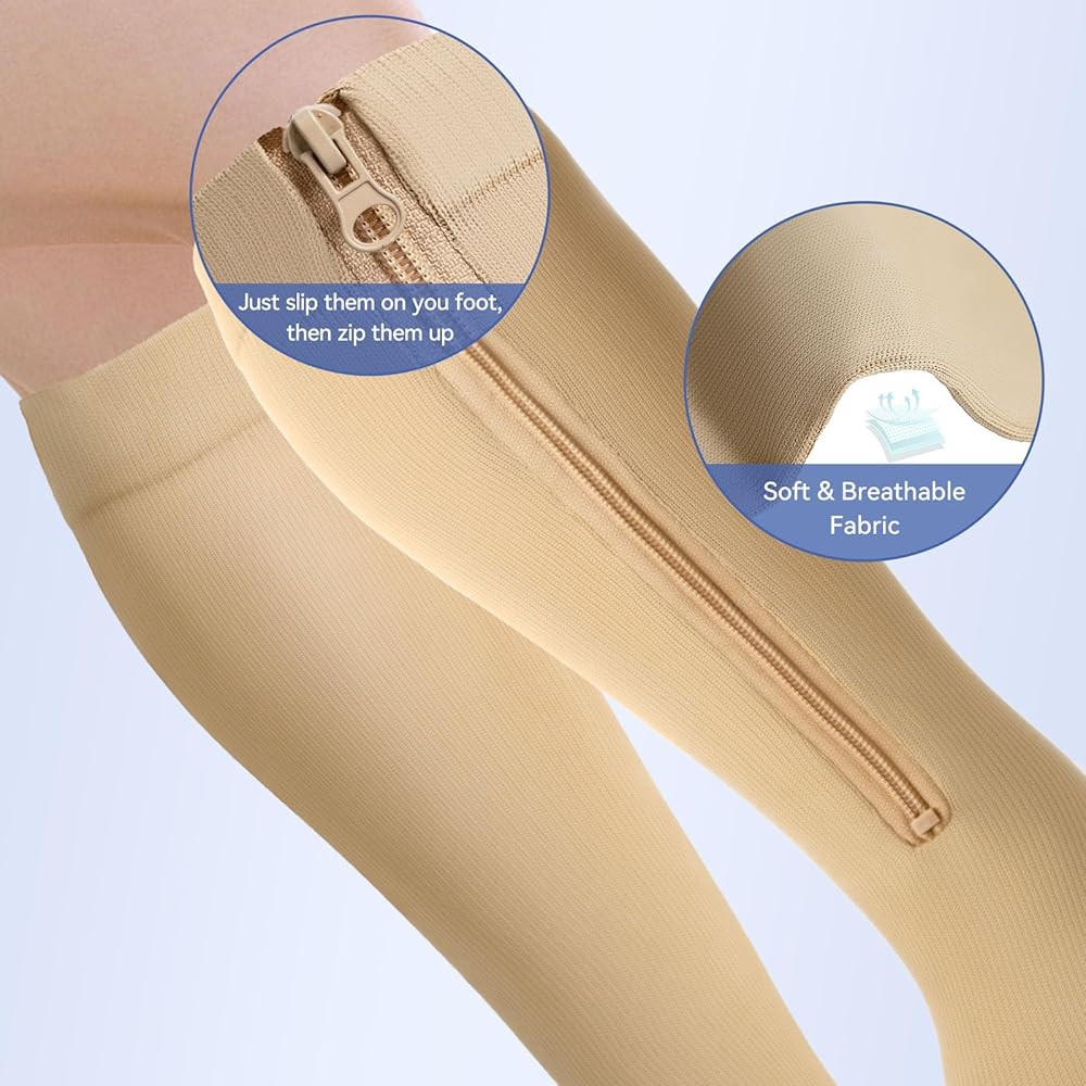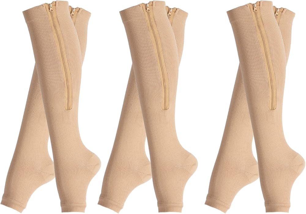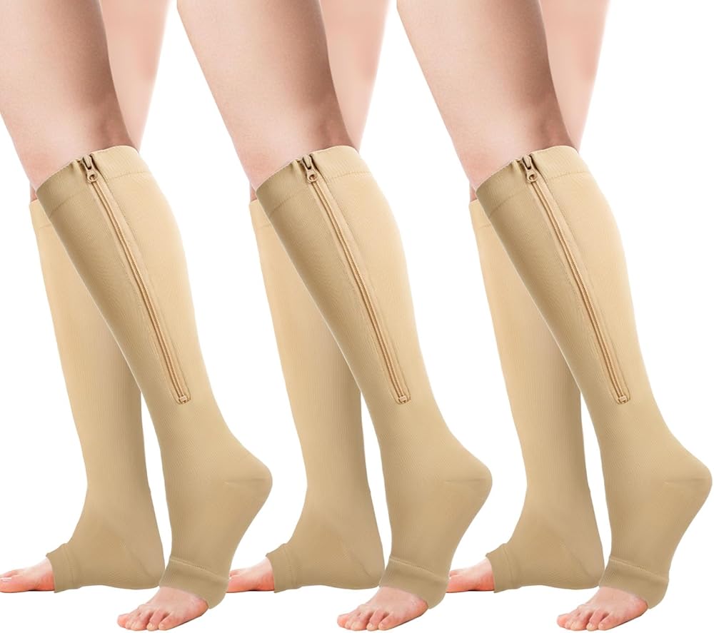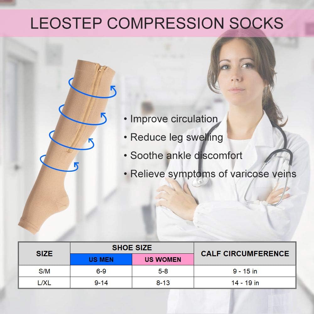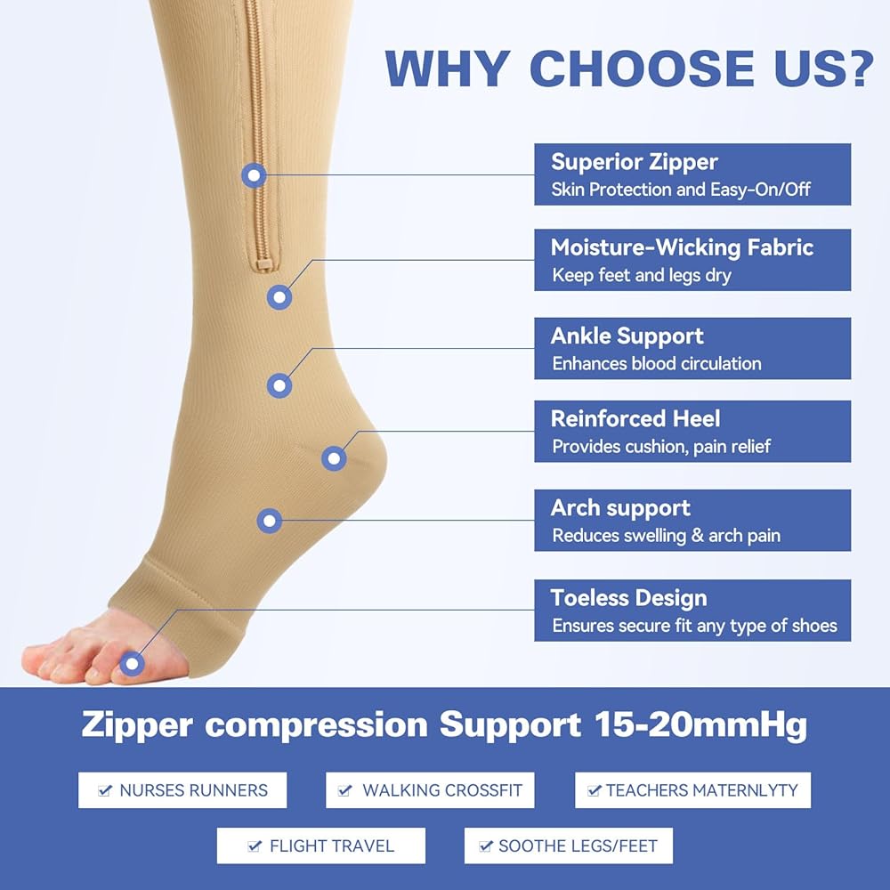 ♥ مادة ماصة للرطوبة - الجوارب الضاغطة الخاصة بنا مصنوعة من 92% نايلون و8% سباندكس، والنسيج الماص للرطوبة يساعد على سحب العرق بعيدًا عن الجسم. توفر السحابات الجانبية عالية الجودة والتصميم المفتوح عند الأصابع ضغطًا فعالاً دون تقليل التهوية والراحة.