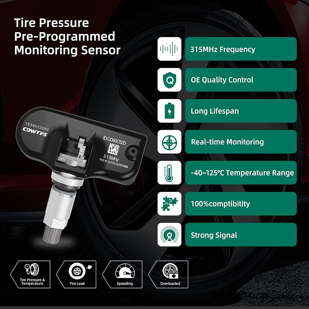 【رقم جزء OEM】أجهزة استشعار tpms مبرمجة مسبقًا، مستشعر بديل للقطعة الأصلية، استبدال أرقام القطعة الأصلية هي 1K0907253D.1K0907253E.1K0907255C