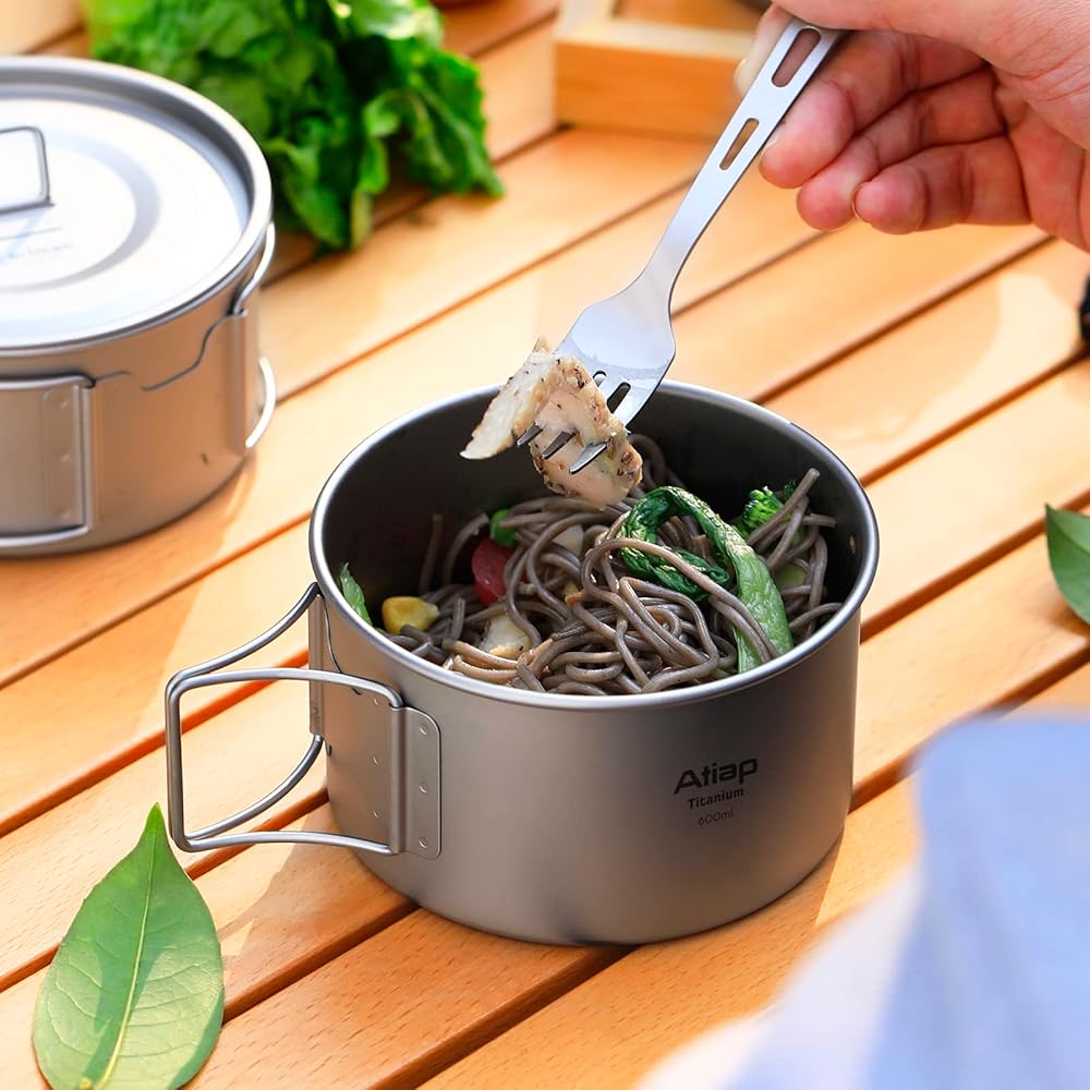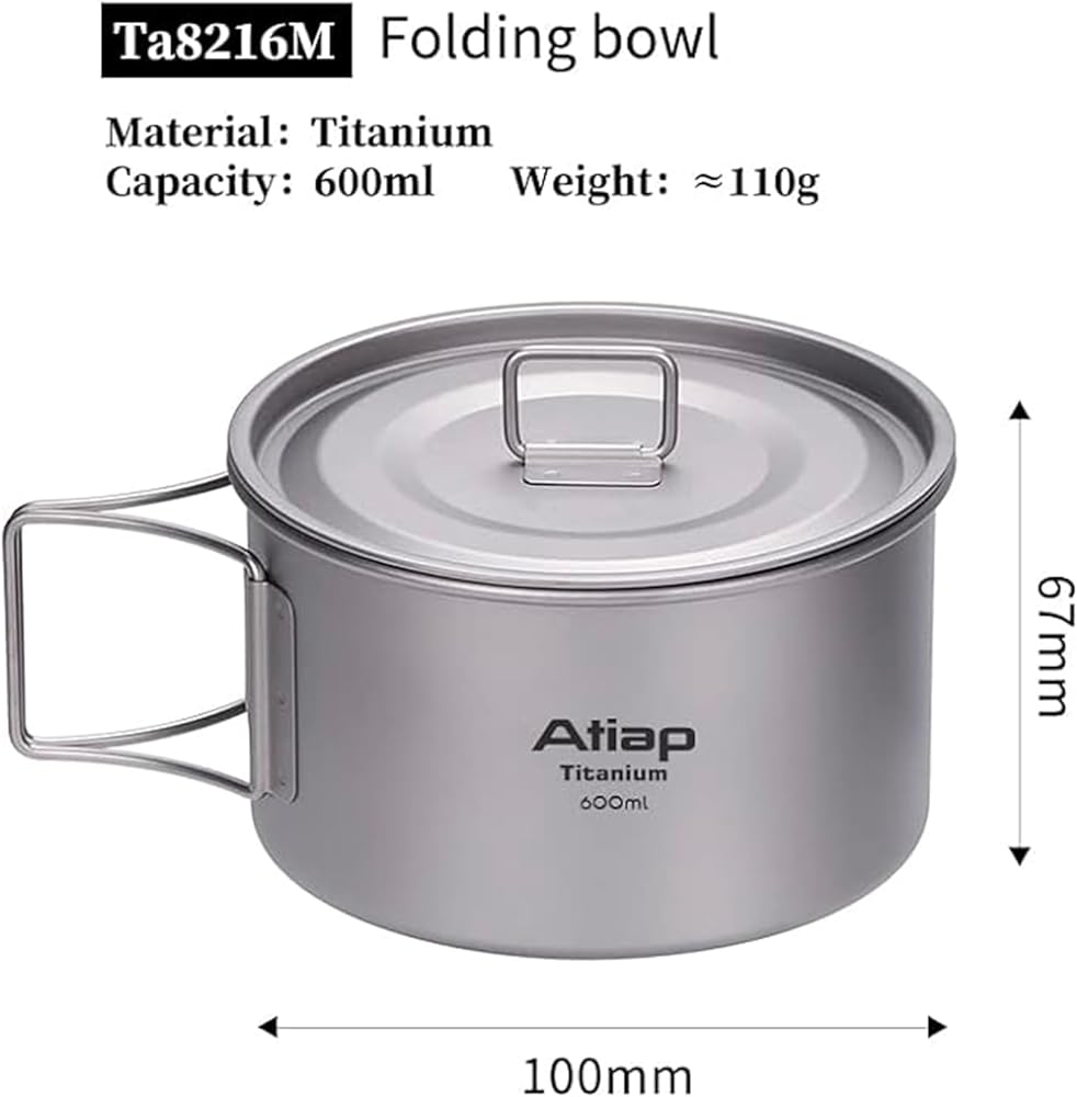 Easy to Storage. The 450ml bowl with the handle design, which is convenient for carrying. Note: The package includes 1 piece 450ml ATiAP Titanium bowl only.