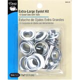 Use Dritz Extra-Large Eyelets with Tool Kit to create decorative accents on layers of light, medium weight and heavyweight fabrics to create lovely apparel. These extra-large eyelets are a great way to reinforce fabric, fasten a hook or cord or to string lace, ribbons and other trim. You can also use them for various home decor and other creative projects: drapes, handbags, home decor, grill covers and boat covers. This package contains 10 size 7/16" brass eyelets and washers plus the anvil and setter tools for application.