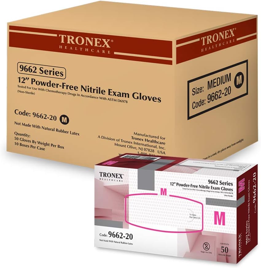 Tronex Nitrile 12" Extra-Thick, Chemo-Rated, Powder-Free, Fully Textured Examination Gloves are heavy-duty, extra-thick style with 12” extended cuff and fully textured surface offering optimal strength, barrier protection from bloodborne pathogens, and resistance to chemotherapy drugs.