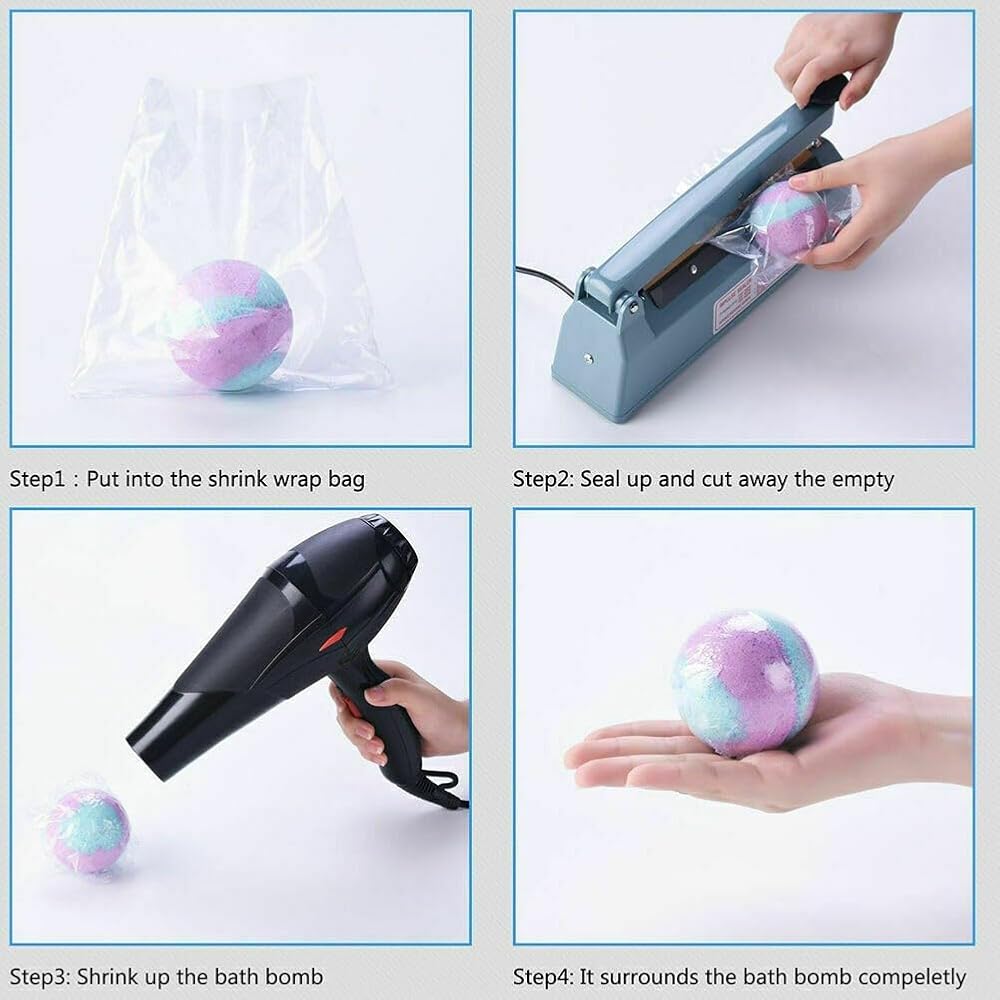 【Work Great】Our shrink bags with 2.5mil, durable and sturdy, not easy to tear and break down. Can be used in Multiple application, can seal the items for keeping it fresh or shrink for storage purpose. Also prevents nicks, dents and damage to the product, retains the fresh smell of soap or bath bomb.