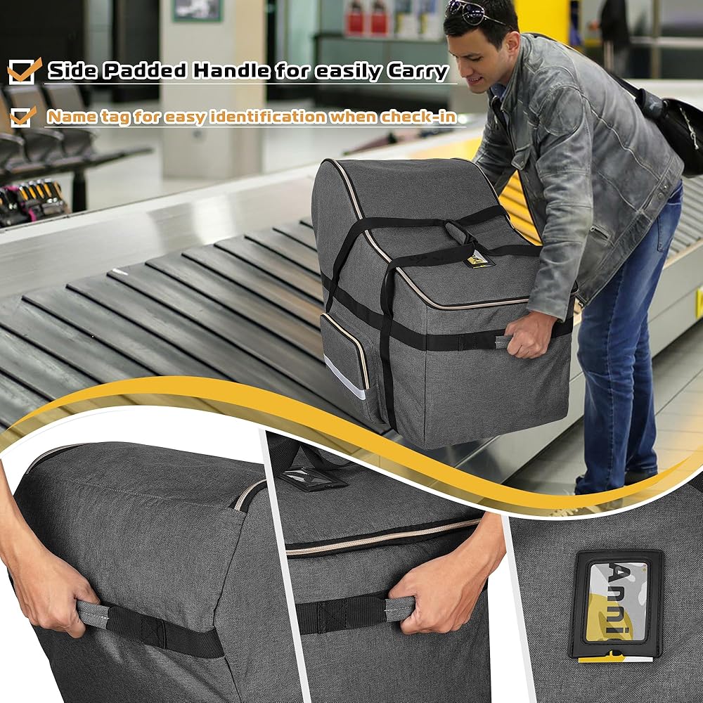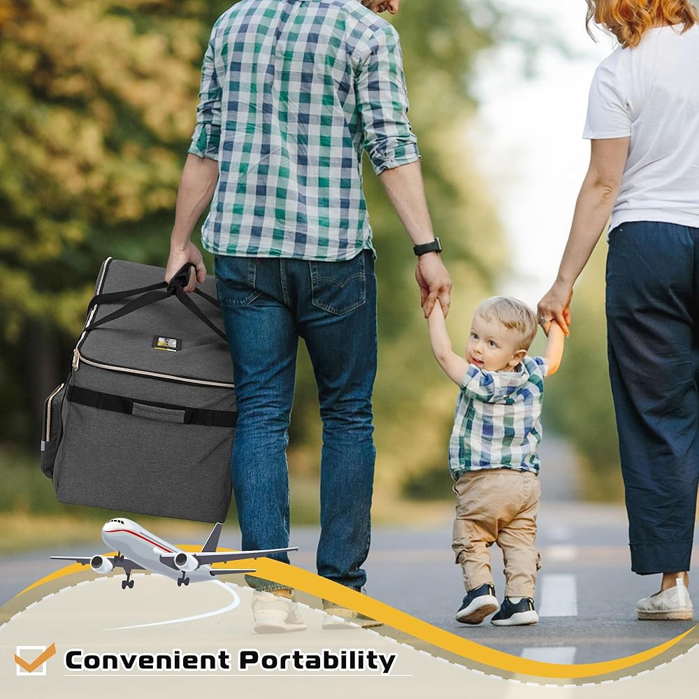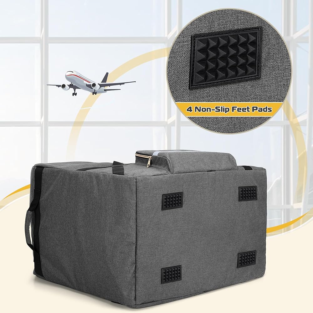 جودة فاخرة: مقعد السيارة وحقيبة السفر الأساسية للطائرة مصنوعان من نسيج بوليستر متين ومقاوم للماء. تمنع أكياس مقاعد السيارة المبطنة مقعد السيارة من التلف أثناء النقل بالطائرة أو السيارة أو القطار.