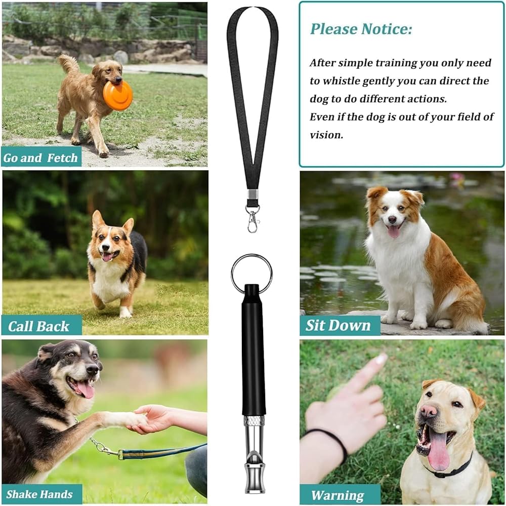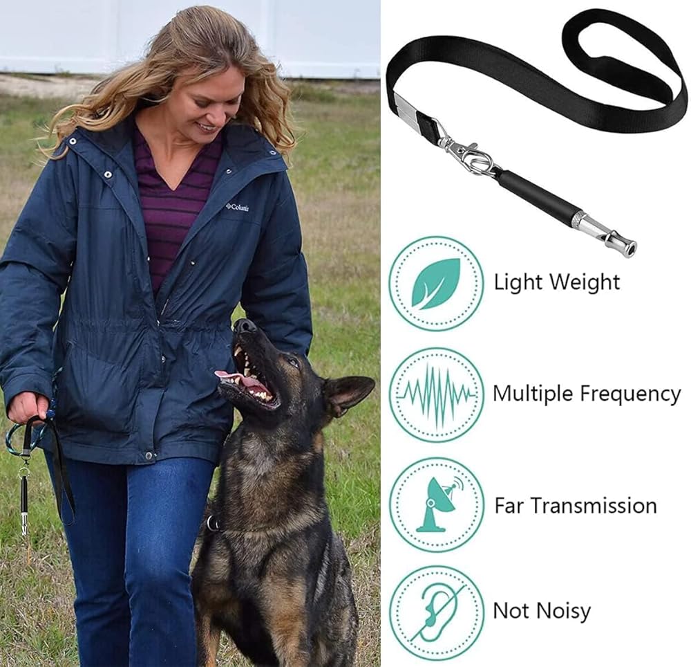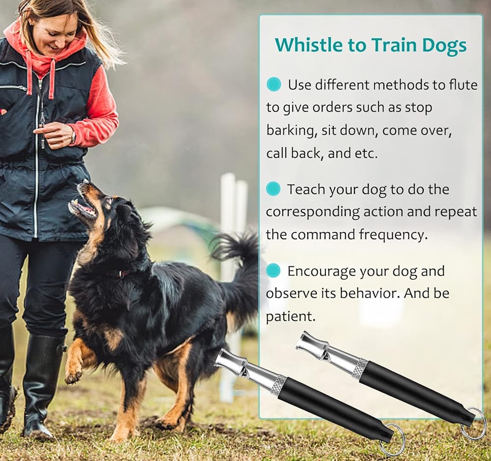 【صفارات الكلاب التي تجعل الكلاب تأتي إليك】: يمكن لحيوانك الأليف سماع صفارة الكلب على مسافة تصل إلى 200 متر حتى لو لم يتمكن من رؤيتك. إنه جهاز تعقب صفارة الكلاب الاحترافي الذي يمنع كلبك من الضياع! حرية تدريب كاملة مع كلاب البودل، والأغنام، وكلاب الروت وايلر، وكلاب الهاسكي، والسلالات الأخرى. عندما يكون عمر الكلب من 3 إلى 7 أشهر يكون تأثير التدريب أفضل.