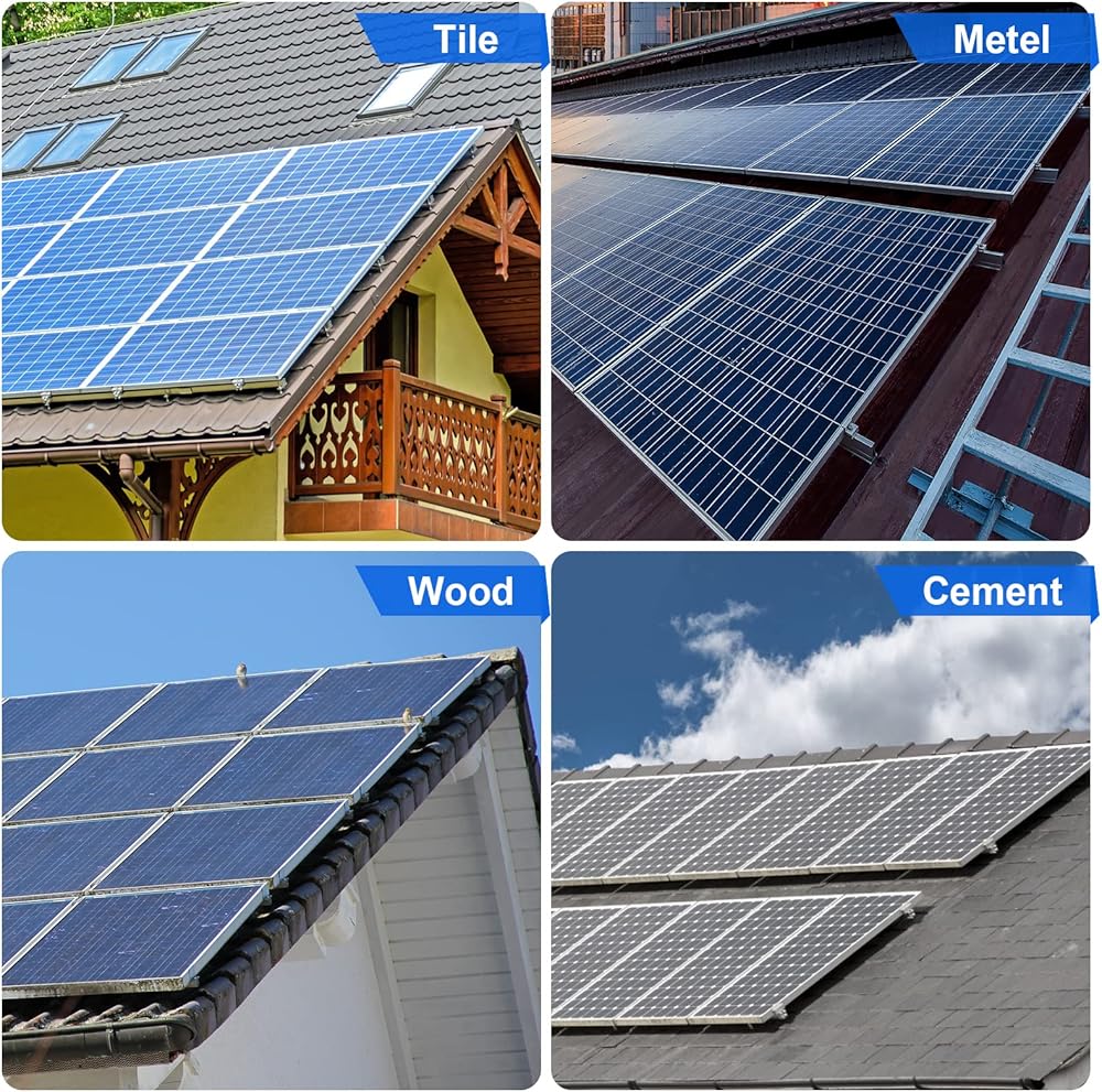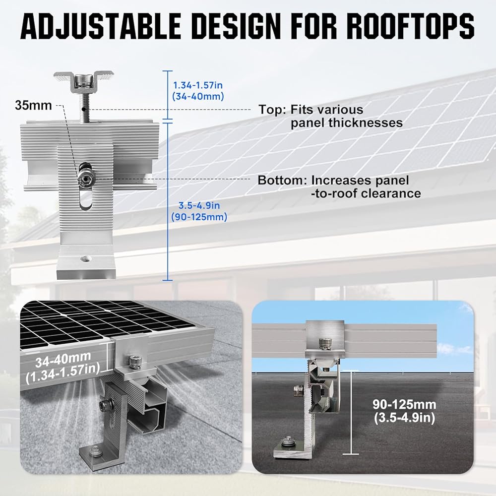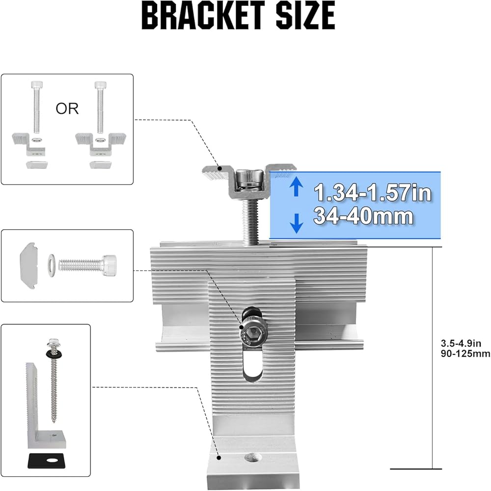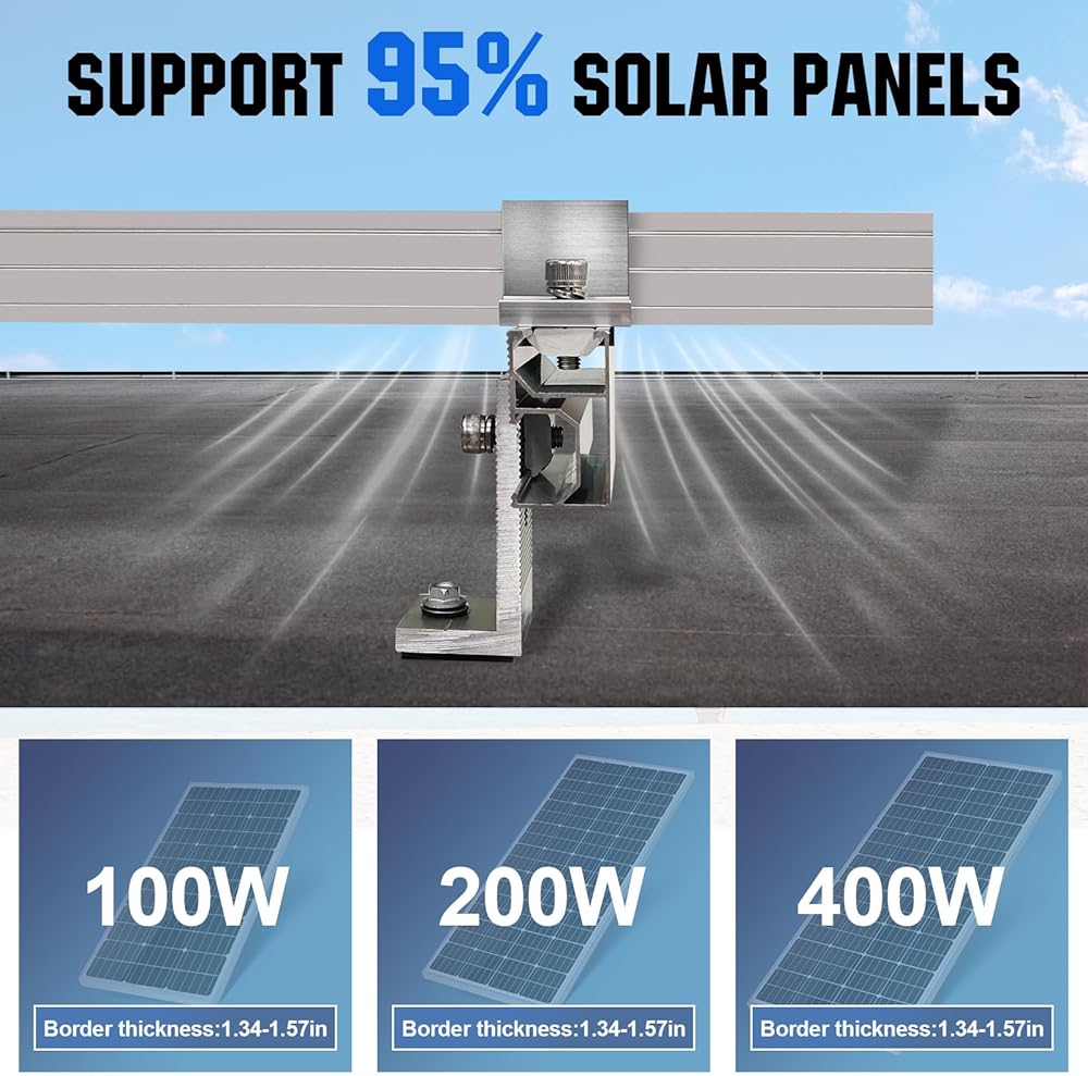 [متوافق]: مناسب لأي حجم من الألواح الشمسية الصلبة. سمك اللوحة الشمسية المقترح: 1.37 بوصة (35 ملم)