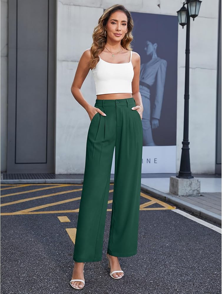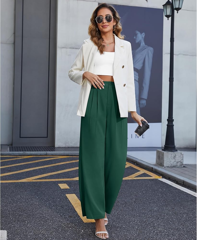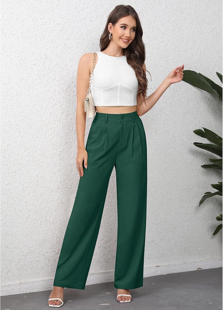 النمط: سراويل بدلة، سراويل واسعة الساق، سراويل عمل عالية الخصر، تصميم خلفي مرن، زر وسحاب في الأمام، سراويل عمل للعمل، مقاس فضفاض، نمط كاجوال، سراويل واسعة الساق مع جيوب.