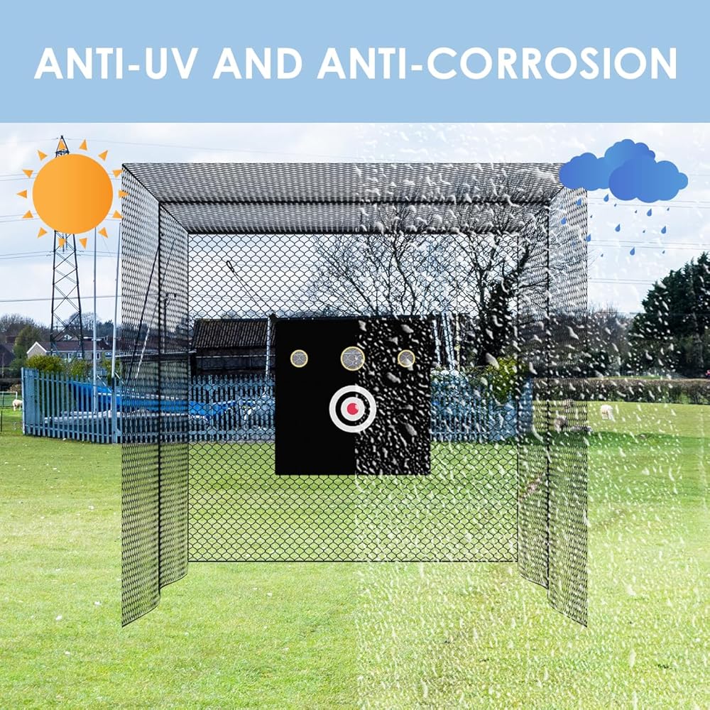 تصميم قطعة واحدة - شبكة قفص الجولف MR منسوجة بمادة شبكية من البوليستر عالية القوة من أجل المتانة، هيكل شبكي عالي الجودة قوي ومتين بما يكفي لتحمل الكرات عالية القوة.