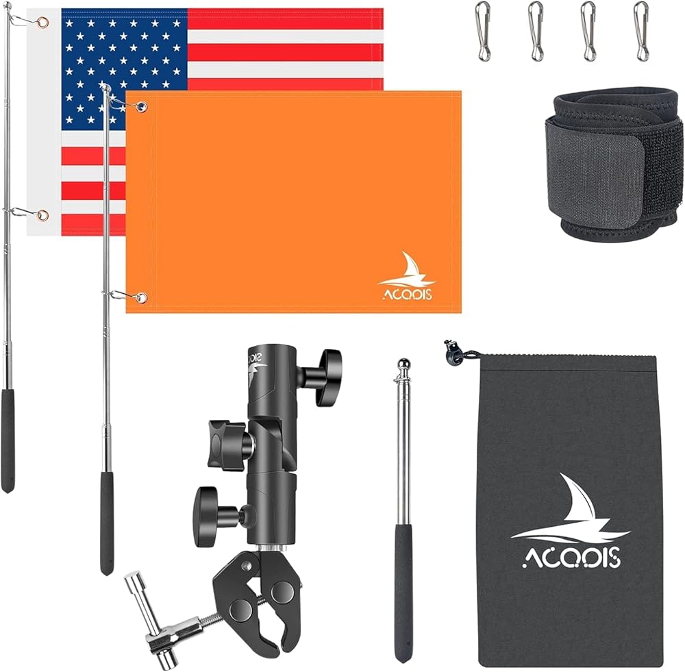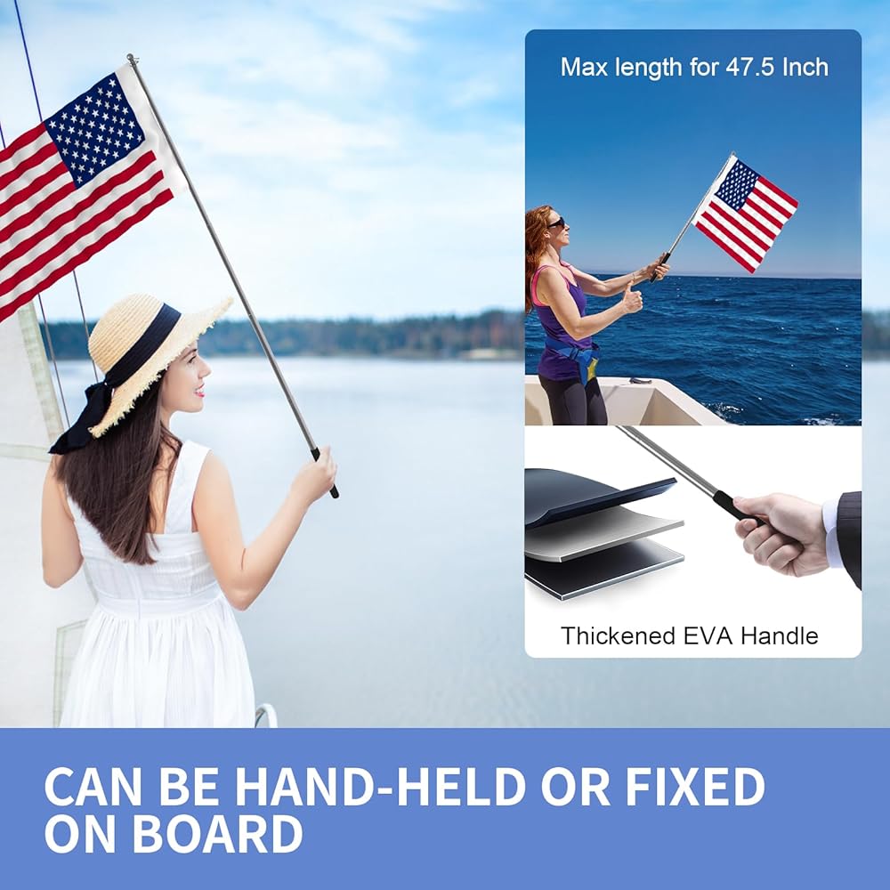 علم القارب البرتقالي، حامل العلم الأمريكي للقارب 48 بوصة علم التزلج على الماء قابل للتعديل سارية علم القارب لقضبان مستديرة ومربعة عائمة مقاس 0.59-2 بوصة، علم الكاياك مع علم بديل للسباحين
