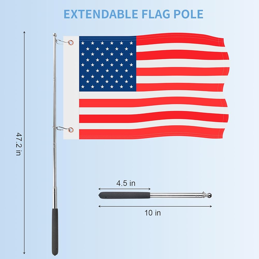 【عمود تلسكوبي من 6 أقسام】يمكن تمديد سارية العلم التلسكوبي من أقصر 10 بوصات إلى أطول 47.2 بوصة. مقبض إسفنجي ناعم صديق للبيئة عالي الكثافة، مضاد للانزلاق وليس من السهل انزلاقه من يدك. مع 4 قطع من المشابك، لا حاجة لشراء المشابك بنفسك، فقط قم بتعليق علمك بحلقات التثبيت. مما يجعلها سهلة ومريحة في التعامل معها عندما تكون مبللة أو جافة!