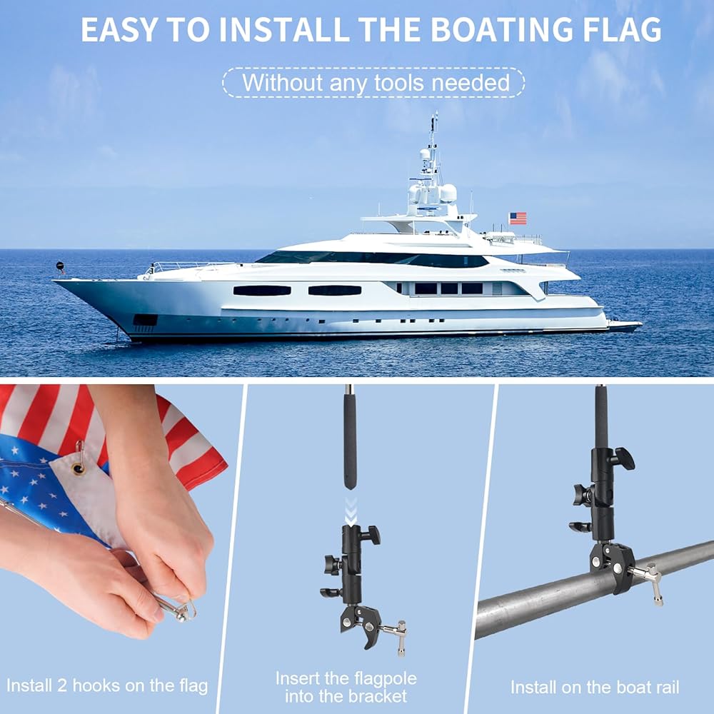 【الفولاذ المقاوم للصدأ الفاخر】طقم عمود العلم الأمريكي للقارب مصنوع من الفولاذ المقاوم للصدأ 304 وإطار من الألومنيوم لمقاومة الصدأ ومتانة طويلة الأمد. تضمن أعمدة العلم شديدة التحمل الثبات حتى في مواجهة النسيم. يتم ربط أعمدة العلم بسرعة بالقوارب، وتحافظ على العلم البرتقالي لأعلى أثناء التزلج وركوب الأمواج وركوب القوارب وما إلى ذلك، ولن يدور علم القارب البرتقالي للأسفل.