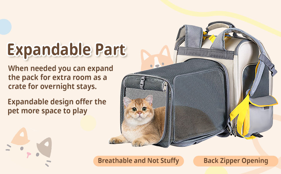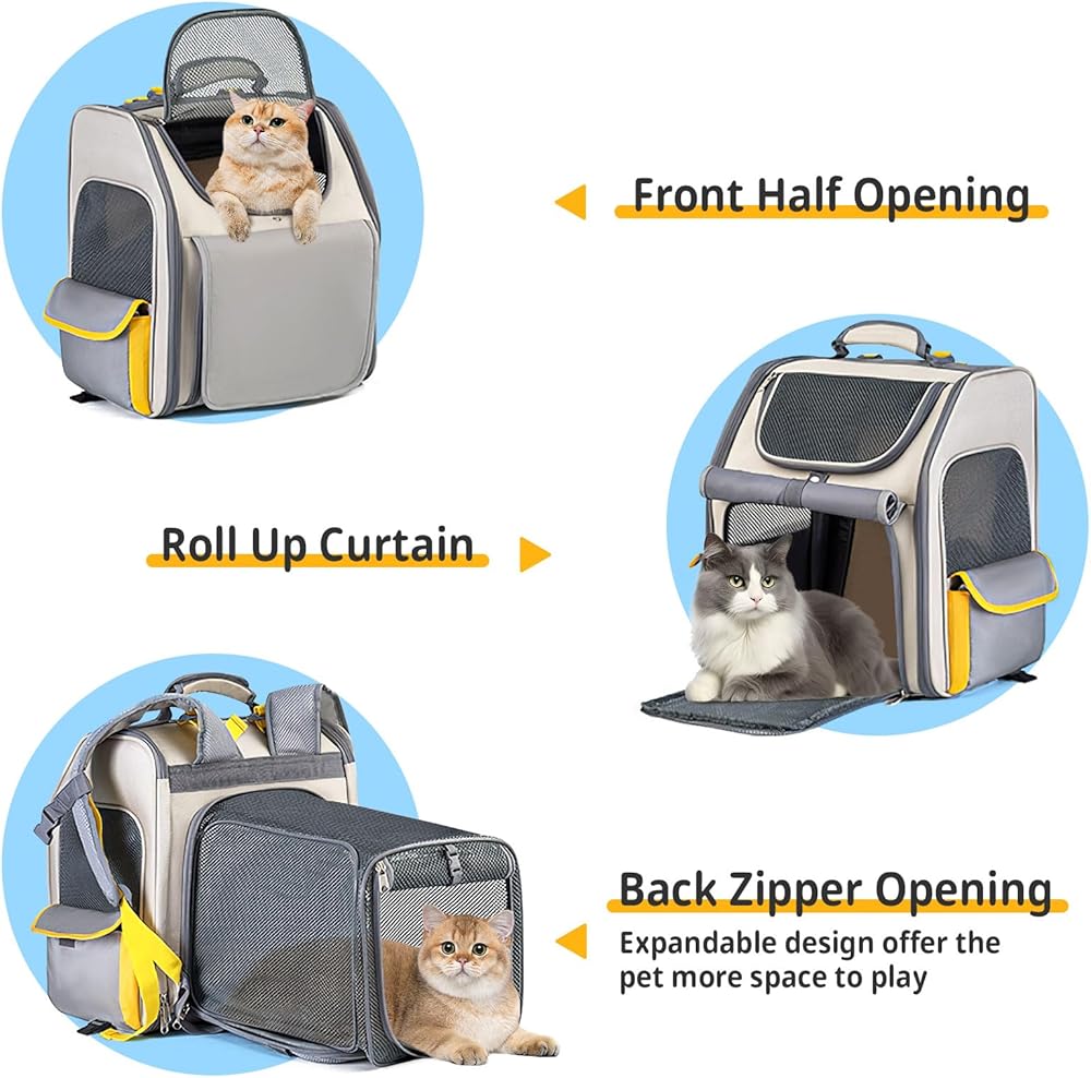 حقيبة ظهر للقطط، حقيبة ظهر لحمل الكلاب للكلاب الصغيرة، قابلة للتوسيع مع حقيبة ظهر شبكية قابلة للتنفس للتخييم أثناء السفر في الهواء الطلق، تحمل ما يصل إلى 18 رطلاً