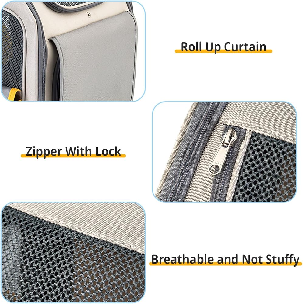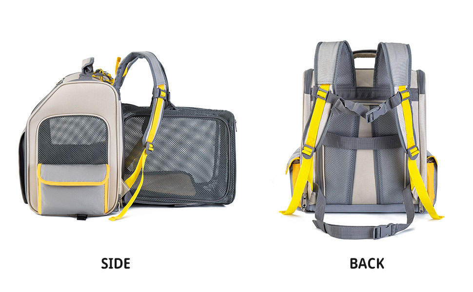 【تصميم ممتاز للترقية】إنه جيد التهوية مع بضعة جيوب، وهي كبيرة بما يكفي لحمل السروج والسلاسل وبعض الأطعمة والمكافآت. المساحة القابلة للتمديد للحيوانات الأليفة رائعة، وهي مناسبة لقطط حمامات الشمس بشكل جيد، وحقيبة ظهر القطط هذه تحتوي على فتحات هواء كافية لحيوانك للتنفس بشكل صحيح.