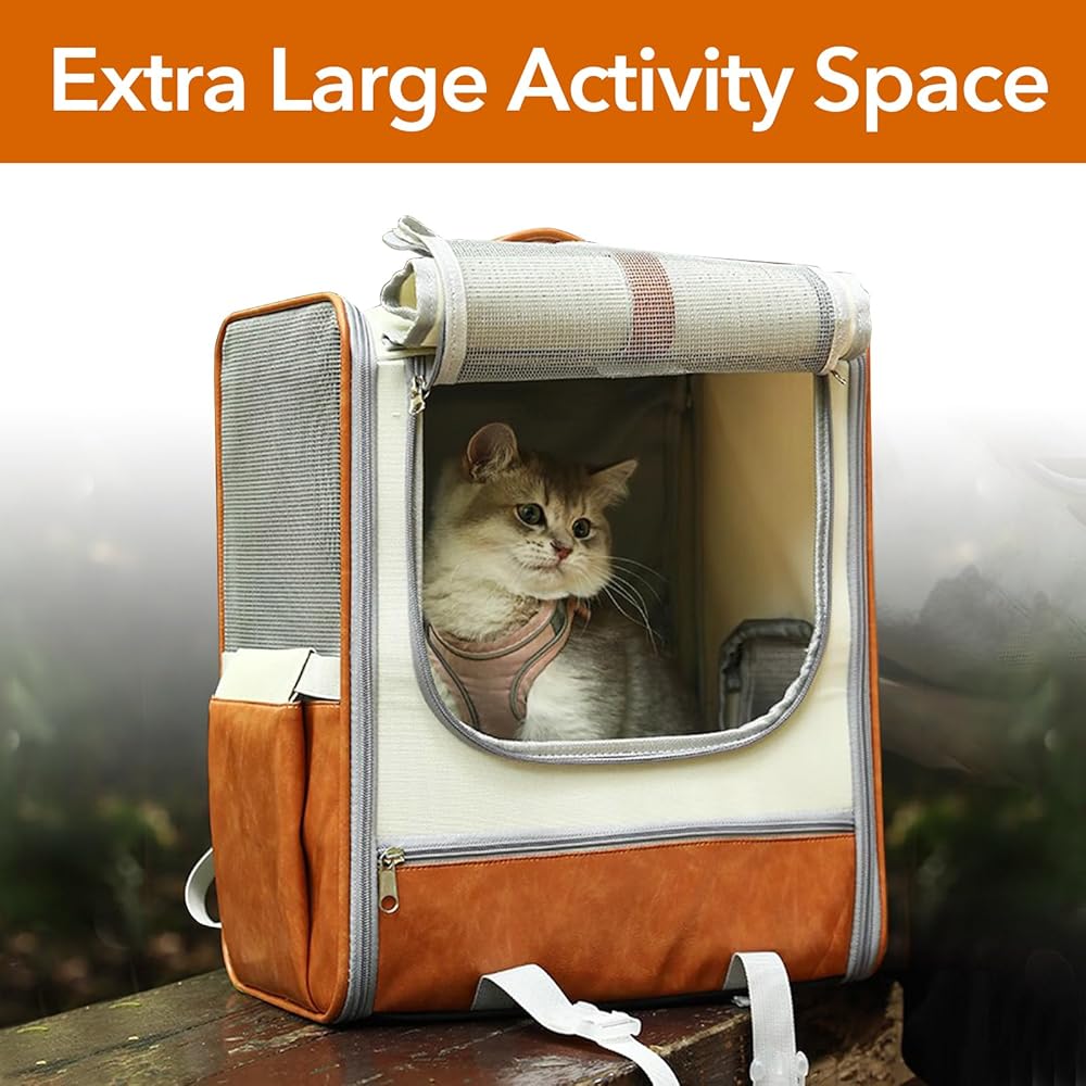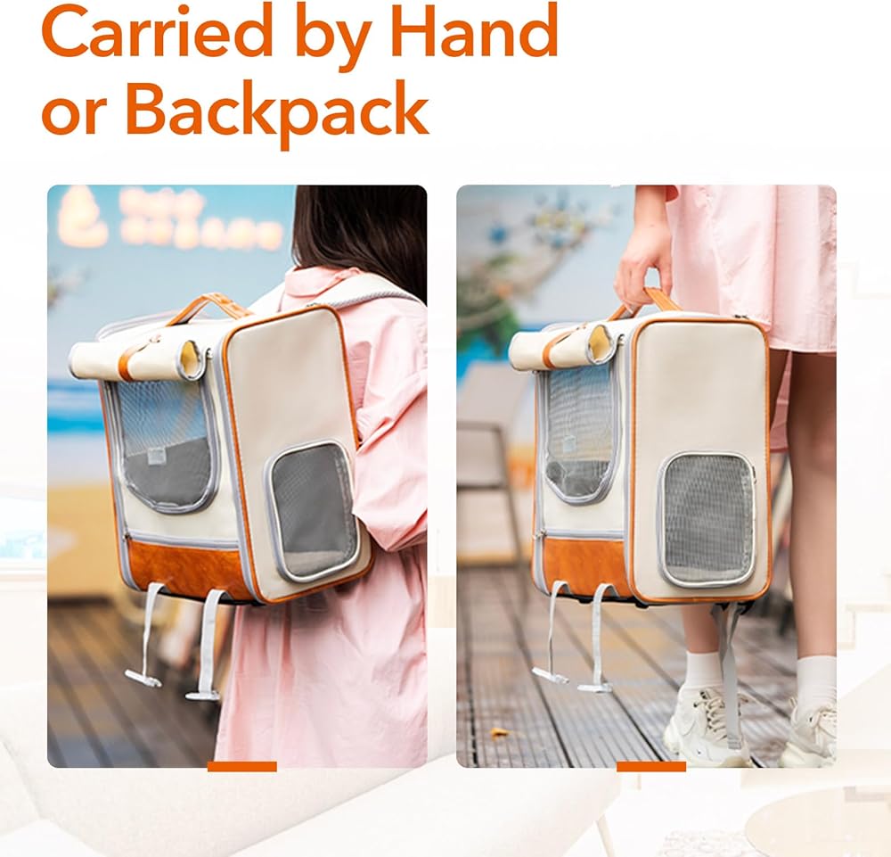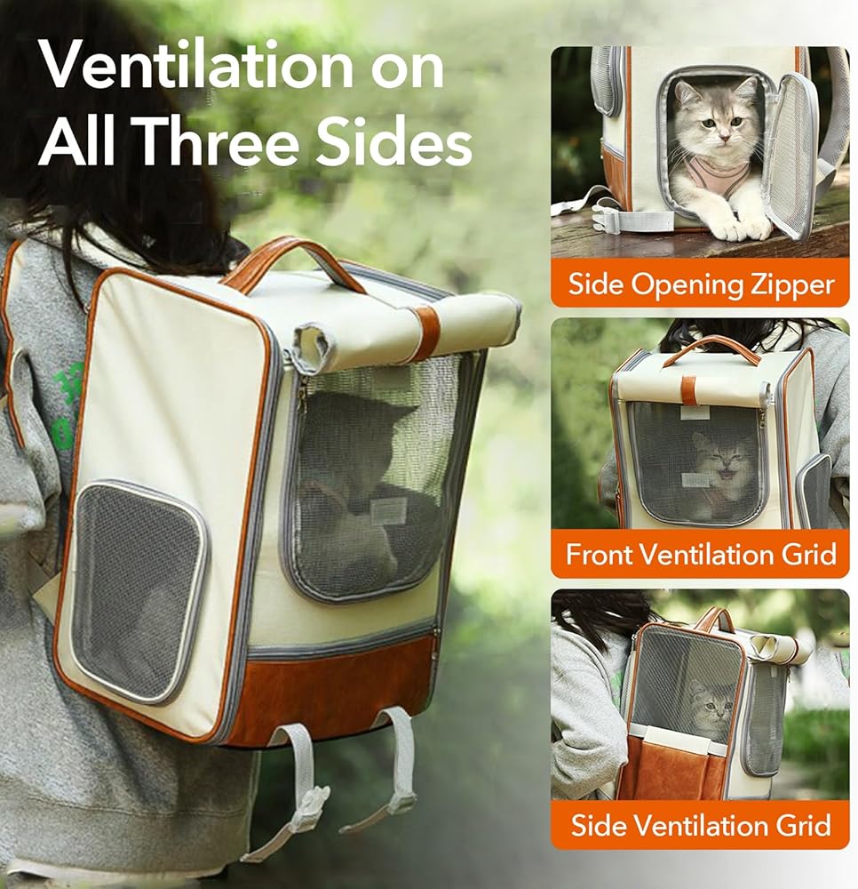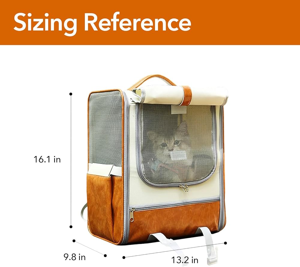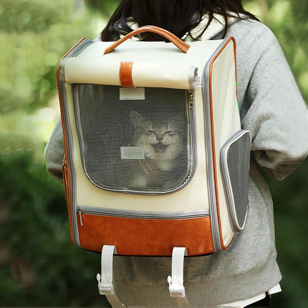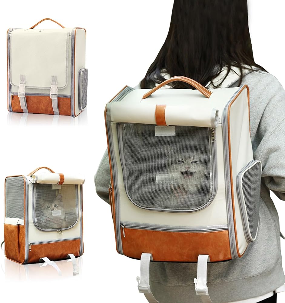 حقيبة ظهر كبيرة للحيوانات الأليفة مع جلد البولي يوريثان وقماش أكسفورد، غطاء قابل للطي، جيب تخزين، قفل أمان ووسادة سفلية بالداخل، للقطط التي يقل وزنها عن 20 رطلاً والكلاب التي يقل وزنها عن 10 رطل