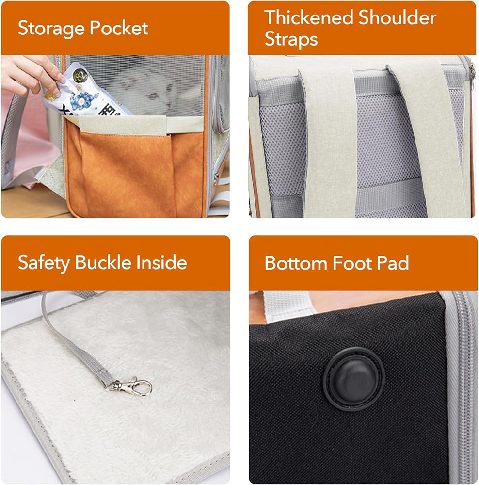 مريحة وآمنة: حقيبة الظهر مزودة بأحزمة كتف مبطنة لتوزيع الوزن بالتساوي، مما يقلل الضغط على كتفيك. كما أنها تحتوي على قفل أمان مدمج لضمان بقاء حيوانك الأليف بأمان بالداخل. توفر الوسادة السفلية راحة إضافية لصديقك المكسو بالفراء.