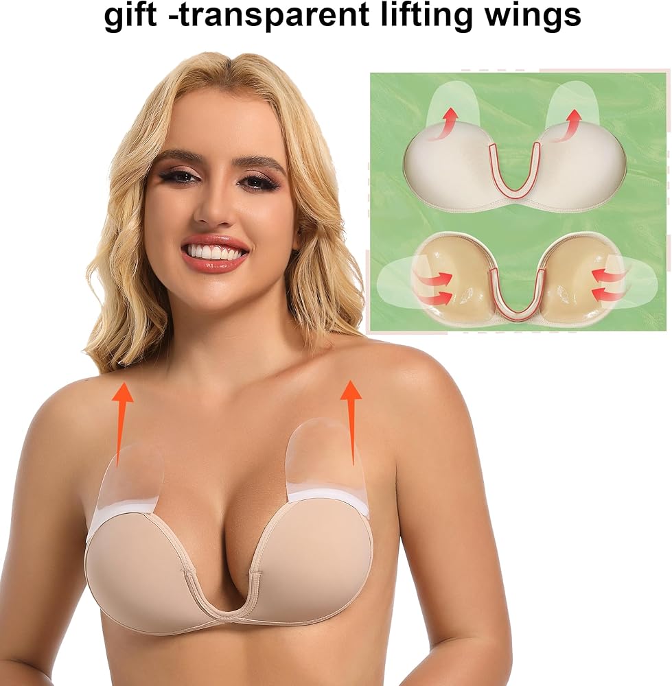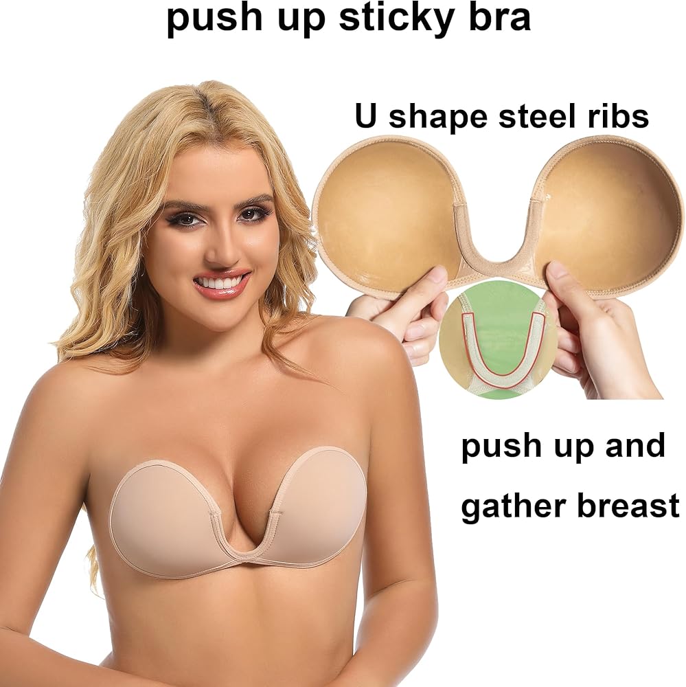 حمالة الصدر اللاصقة ذات الإطار الفولاذي على شكل U: مع التصميم الفولاذي على شكل U، يمكن أن تساعد حمالة الصدر اللاصقة على رفع وجمع ثدييك بشكل أفضل من حمالات الصدر اللاصقة العادية. وحافظي على صدرك في وضع جيد لمنع الترهل، واصنعي شكل حرف V أكثر سحرًا لجميع أنواع القمصان والفساتين بدون ظهر.