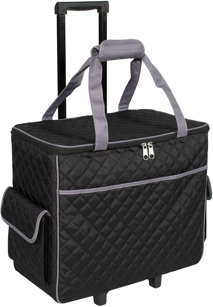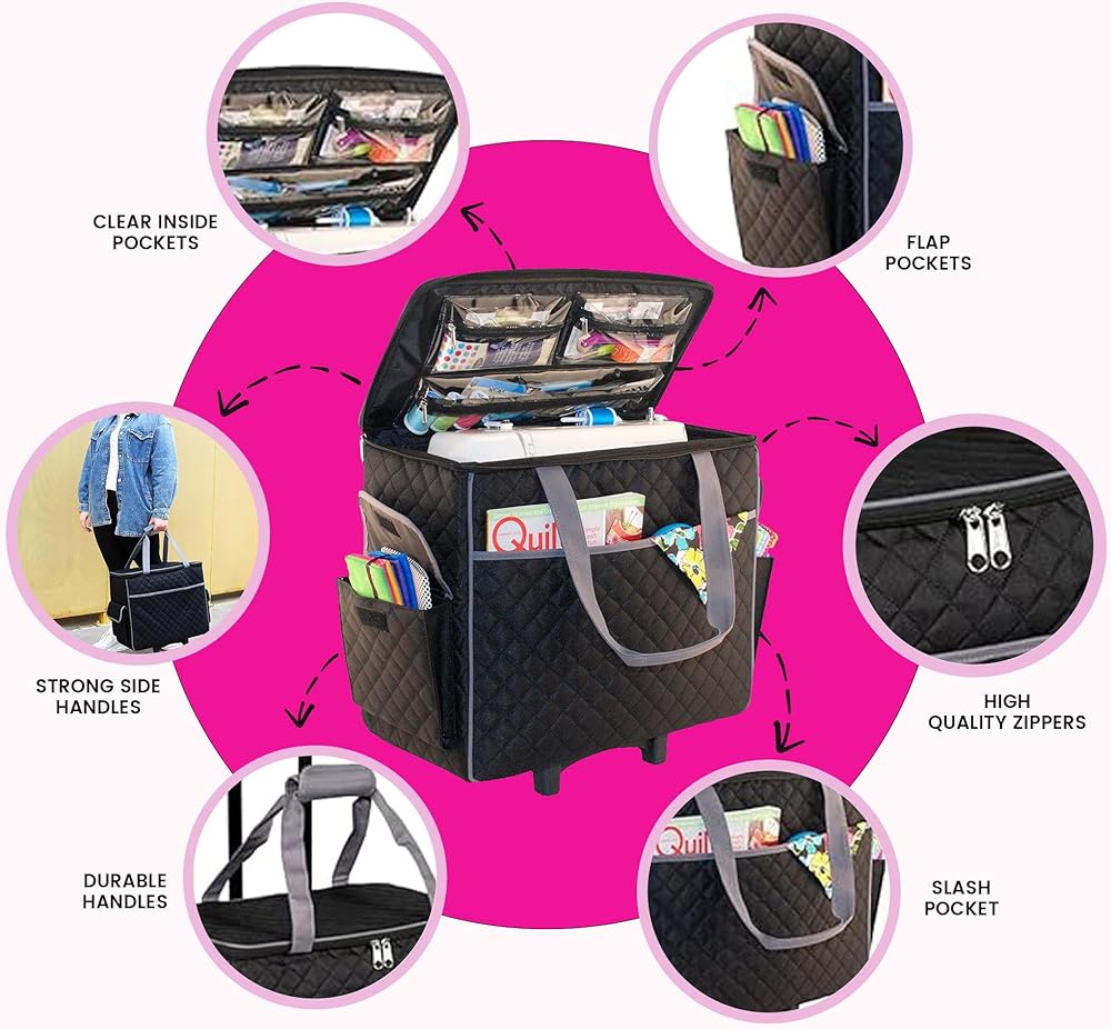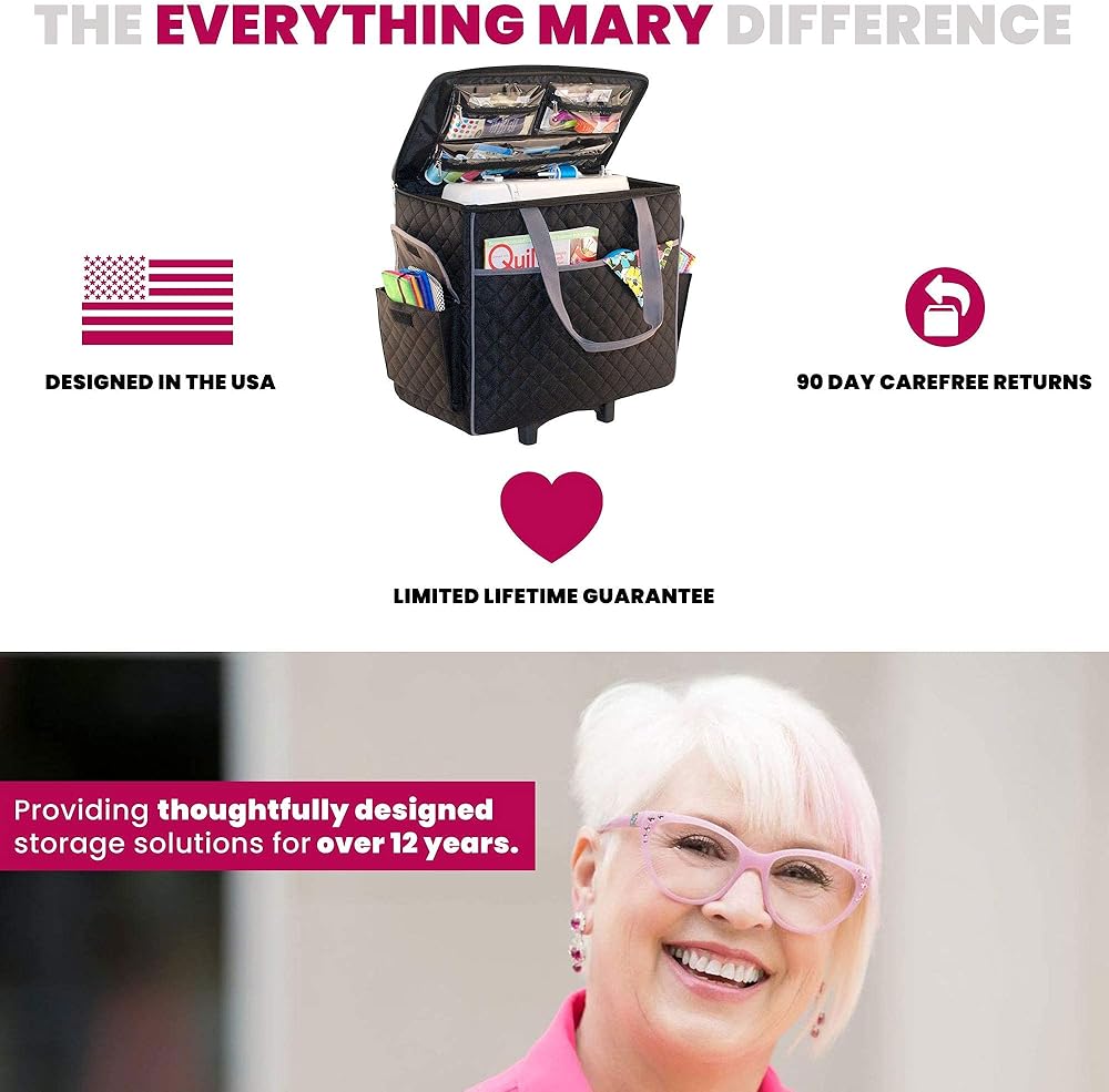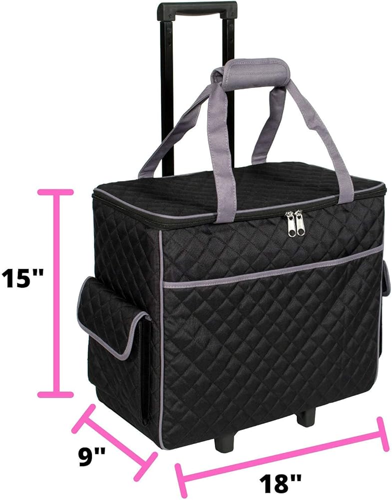 حقيبة حمل دوارة لآلة الخياطة من إيفريثينج ماري، مبطنة باللون الأسود - حقيبة عربة بعجلات للأخ، بيرنينا، المغني ومعظم الآلات - حامل حمل بعجلات للأفكار والحرف اليدوية