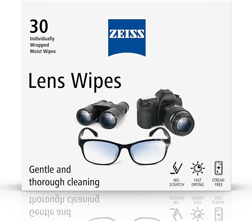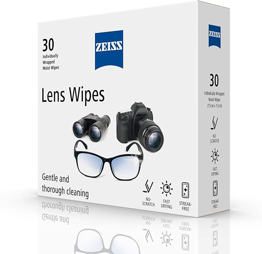 Individually wrapped, pre-moistened wipes that are fast drying and leaves no streaks. The wipes are made of a soft microfine tissue that will not scratch your optics. The cleaner is formulated to work on all types of coated lenses including lenses with anti-reflective coating, Blue Light Blocking, prescription, reading, sunglass, binoculars, riflescopes, camera lenses, and other optics. ZEISS cleaners are developed to remove dust, fingerprints, and grime without stripping away the lens coating.