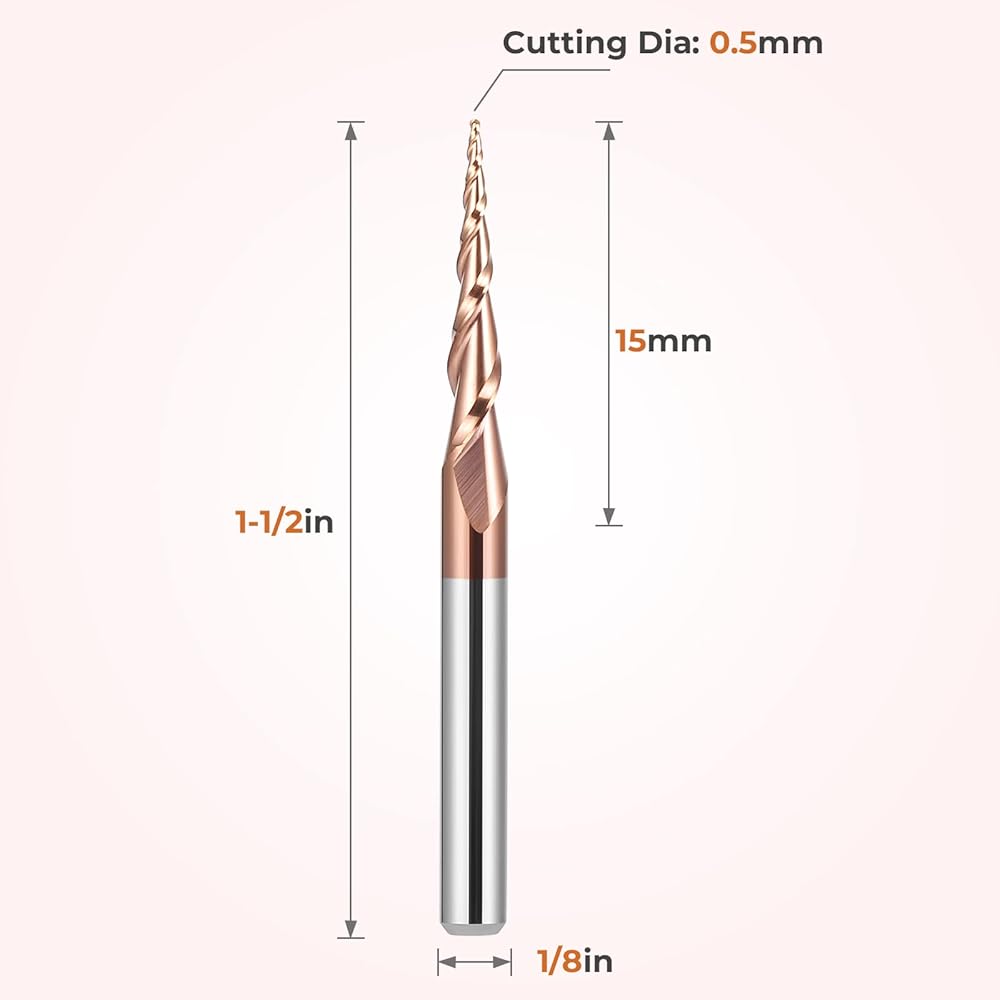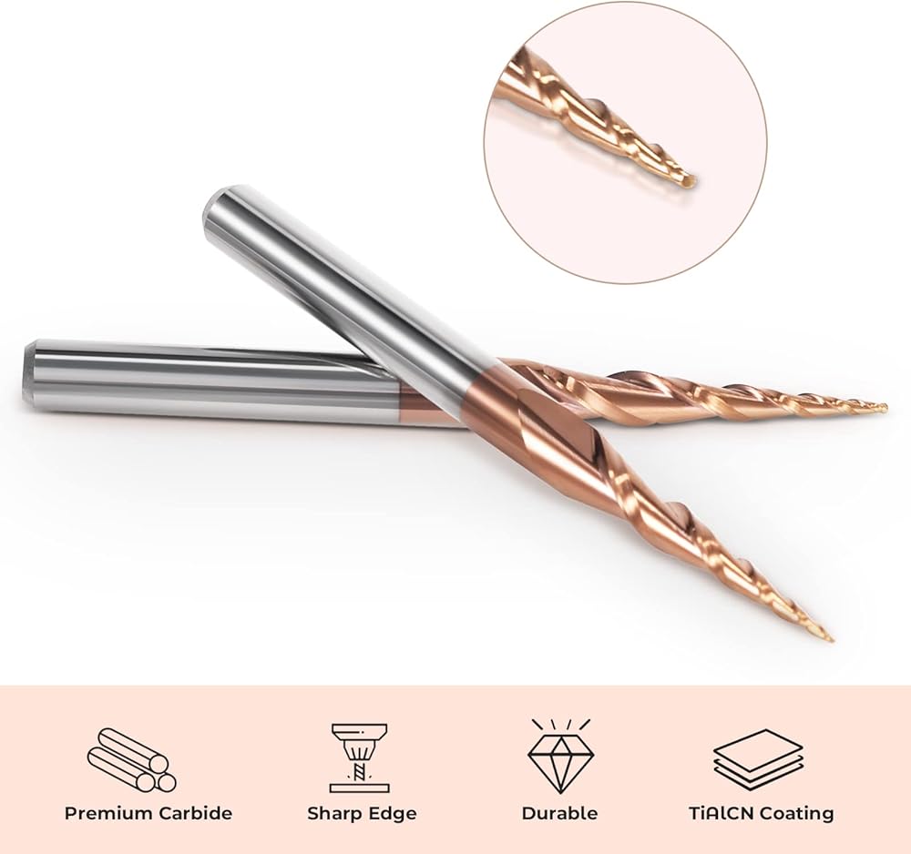 • طلاء TIALCN عبارة عن طلاء نانو، مما يعني أنه صعب للغاية، ويمكن استخدامه في درجات حرارة عالية ولا يزال ينتج احتكاكًا منخفضًا. تتضمن العبوة: 5 قطعة مطحنة نهاية نحت الكرة المدببة