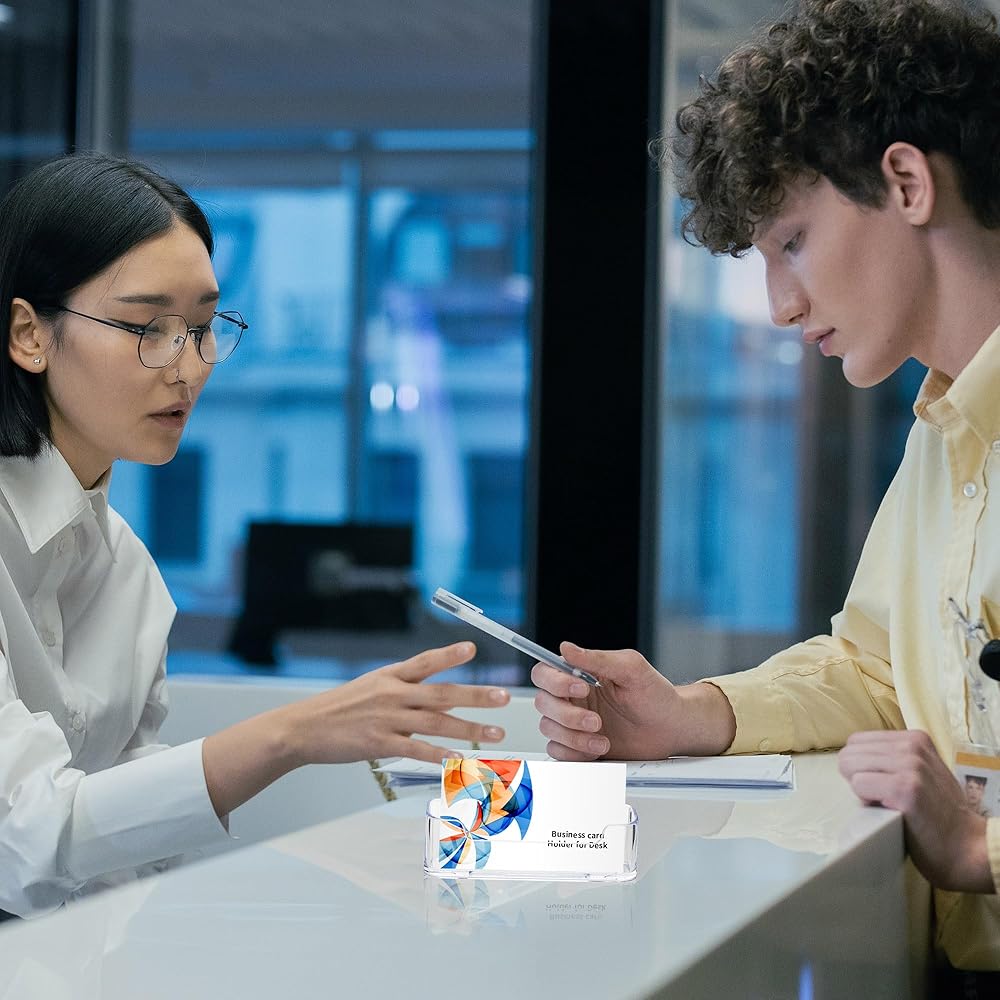 50 Pack Clear Business Card Holder Display, Plastic Business Card Stand Desk Acrylic Business Card Holder for Business Home and Office