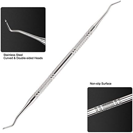رافع أظافر القدم الغارزة برأس منحني مزدوج الجوانب، وهو أيضًا منظف لأخدود الأظافر، مع ملعقة صغيرة على كلا الرأس المنحني لتنظيف بقايا أظافر القدم.