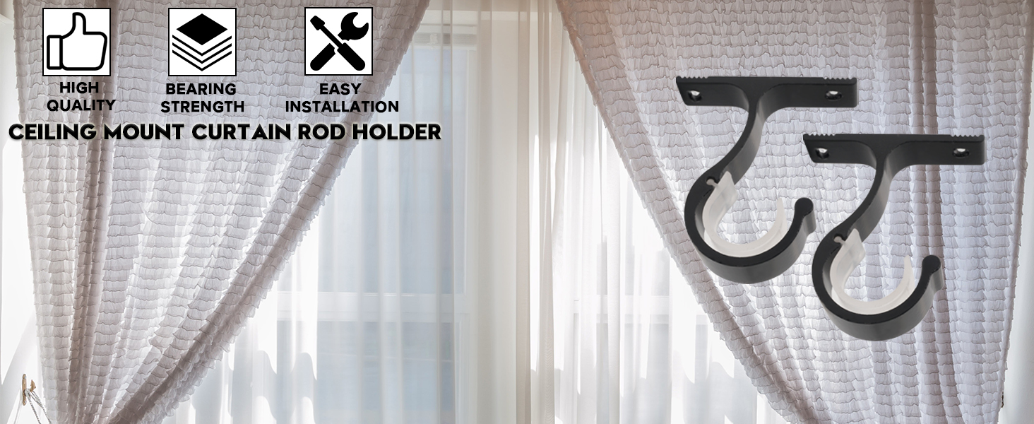 جودة عالية - دعامة حديد سميكة مع طلاء مقاوم للصدأ، يمكن أن تتحمل وزنًا كافيًا لدعم ستائرك الثقيلة. يمكن للإبزيم البلاستيكي الموجود في الغطاء أن يحمي.