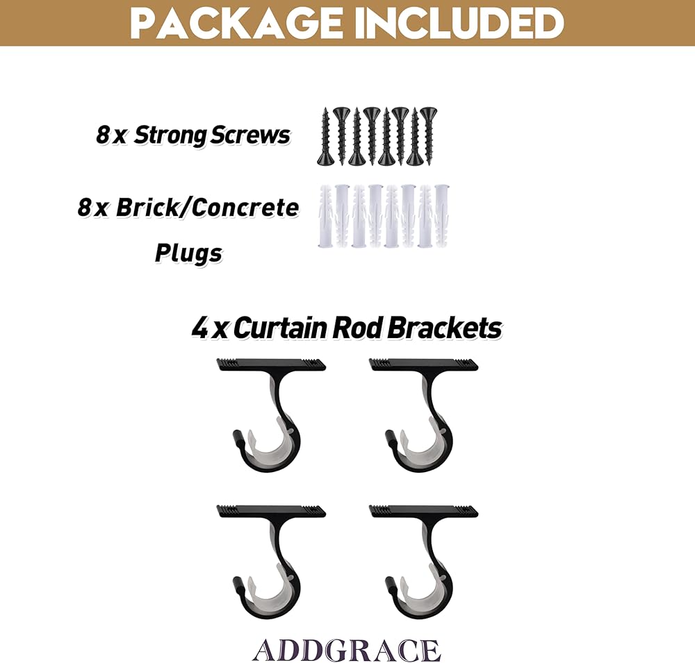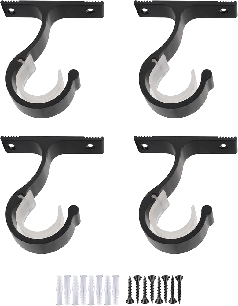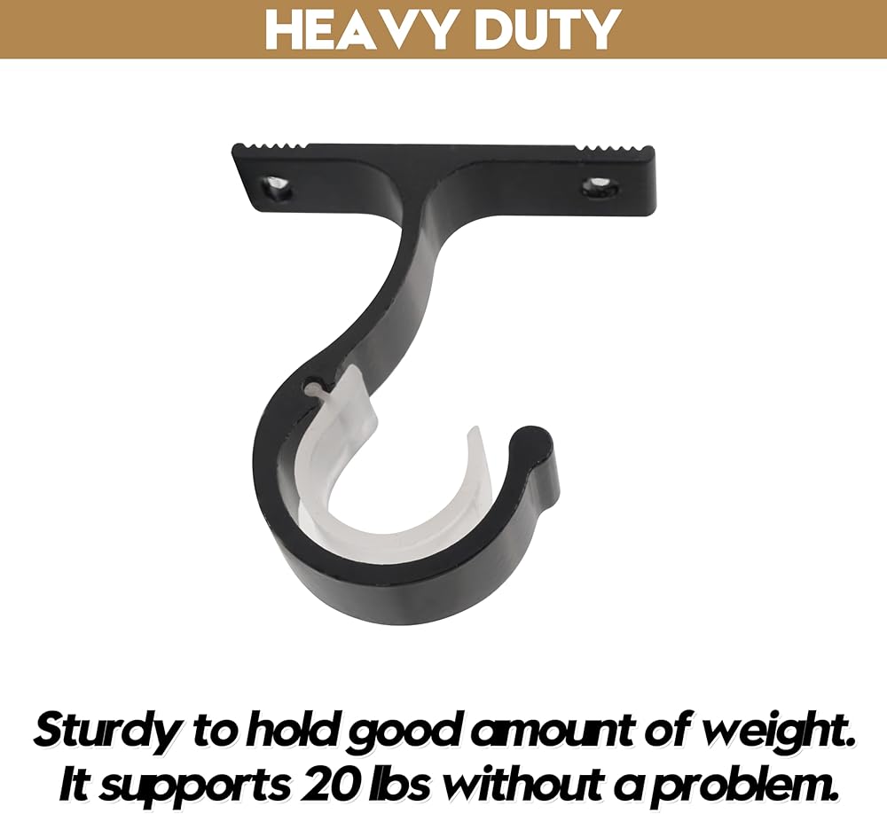 حامل قضيب ستارة فردي من AddGrace، حامل قضيب ستارة واحد، أسود، 4 عبوات من حوامل قضبان الستائر شديدة التحمل مع براغي خطافات قضيب ستارة عتيقة لقضيب الستائر مقاس 1 بوصة