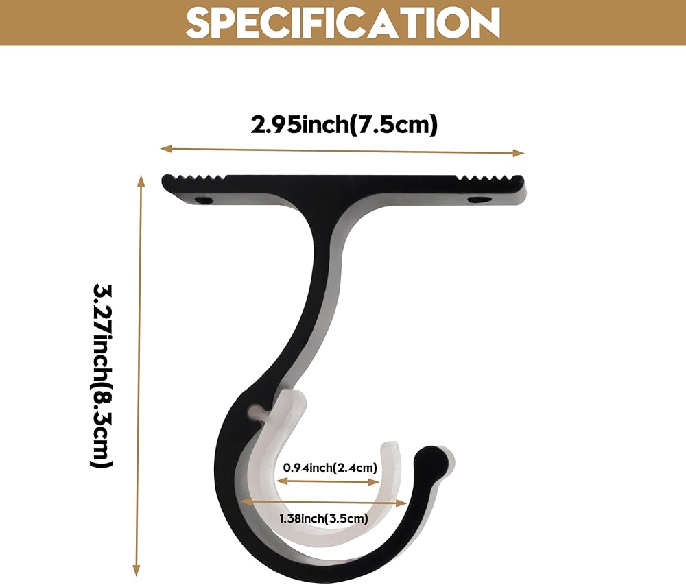 قابل للتعديل - يمكن للكوب أن يحمل قضيبًا مقاس 0.9-1.0 بوصة والإطار الأفقي لقضيب الستارة القابل للتعديل يساعدك على تخطيط غرفتك بشكل مثالي.
