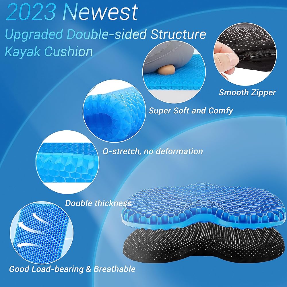 【وسادة جل متعددة الاستخدامات للمغامرات المائية】وسادة الجل للجلوس مناسبة لجميع مقاعد الكاياك والزوارق والقوارب، مقعد وسادة الكاياك هذا هو الرفيق المثالي لمغامراتك المائية. استمتع بدعم معزز واسترخاء أثناء الانزلاق عبر الأمواج، مما يجعل كل لحظة على الماء أكثر متعة.