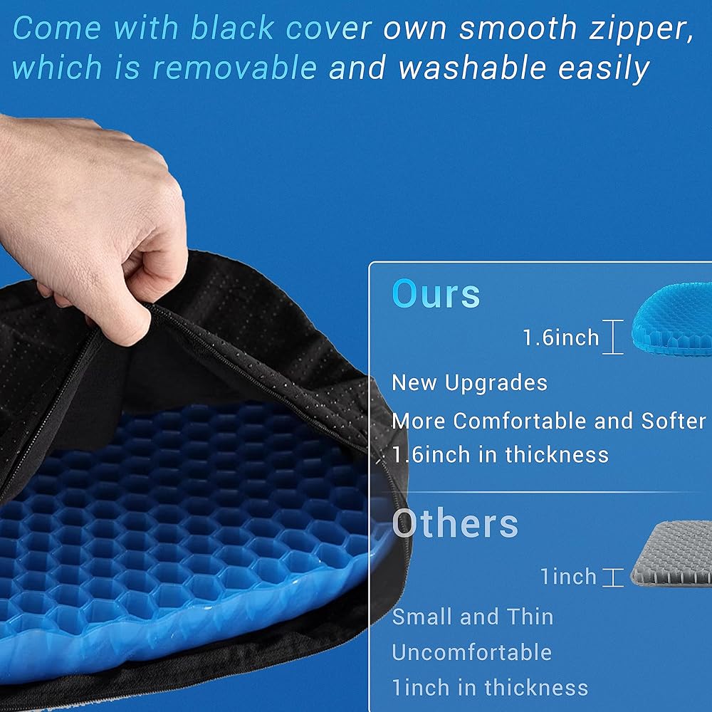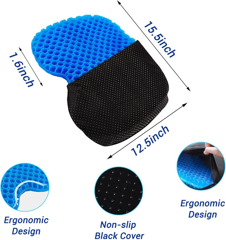 【تعزز دعم عظمة الذيل وتخفيف الضغط】تحتضن وسادة المقعد الهلامية لدينا تصميمًا مريحًا فريدًا على شكل حرف U، تم تصميمها لتناسب الانحناءات الطبيعية للأرداف بشكل لا تشوبه شائبة. من خلال توزيع الضغط ببراعة على الجزء الخلفي والفخذين بالكامل، فإنه يخفف من عدم الراحة دون عناء مع توفير دعم لا مثيل له. بفضل هيكلها الشبكي المبتكر على شكل قرص العسل، يتم تحرير كل نقطة ضغط مزعجة دون عناء، مما يضمن لك الاستمتاع بأقصى قدر من الراحة والجلوس بلا كلل.
