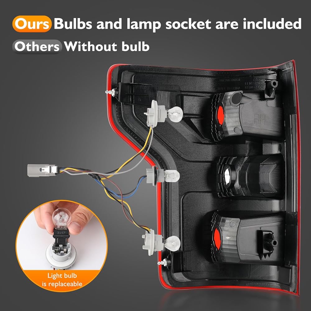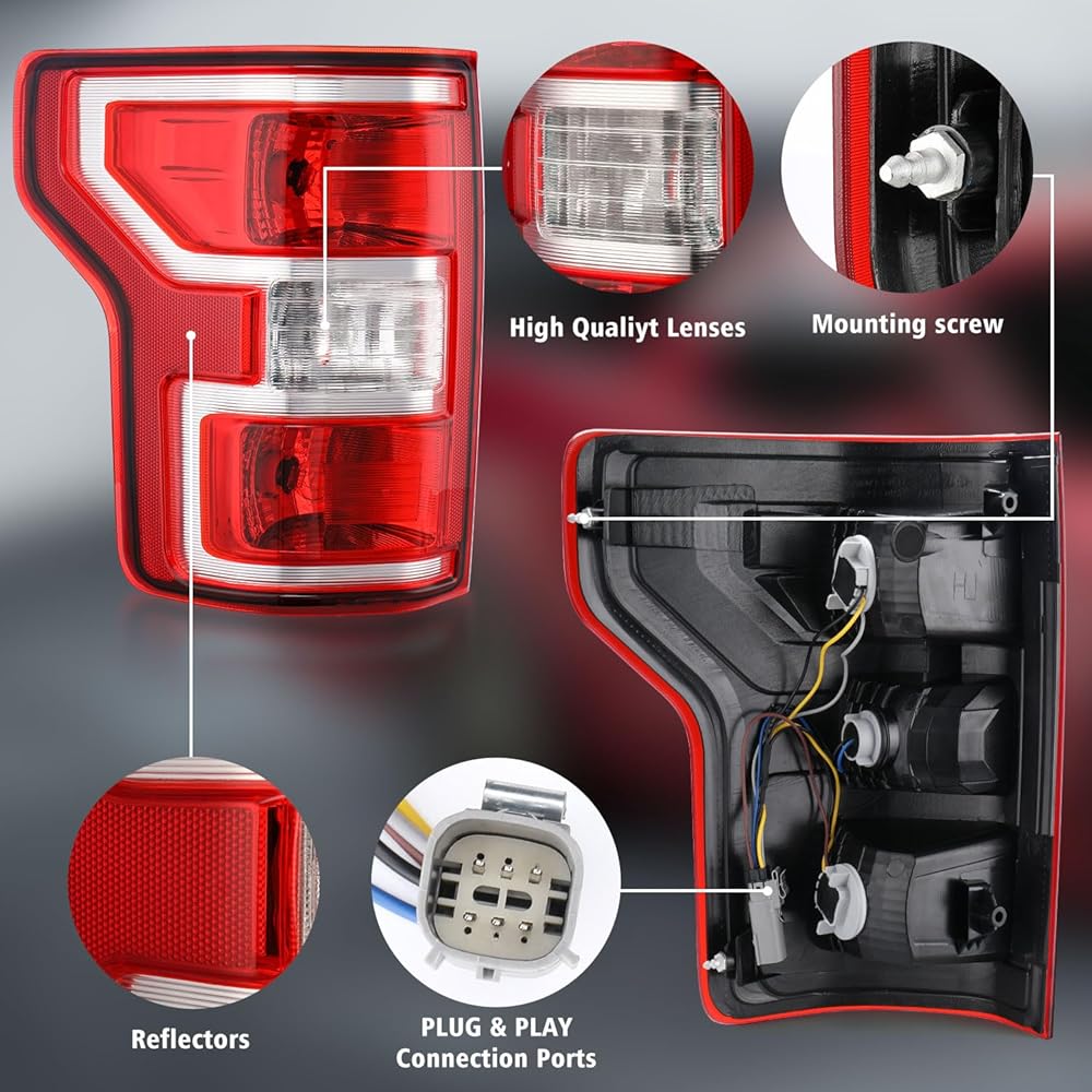 ملاءمة مثالية: مجموعة مصابيح الذيل متوافقة مع 2018 2019 2020 Ford F150 F-150 مع المصابيح والسرج.