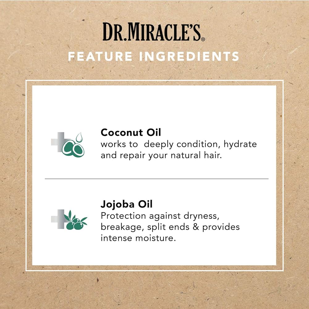أثبتت كفاءته في العناية بالشعر - تساعد تركيبة دكتور ميراكل فيل إت على منع التقصف وتعزيز نمو الشعر الصحي. نظام الاسترخاء غني بالفيتامينات والجوجوبا وزيوت اللوز الحلو وجوز الهند مما يترك شعرك ناعمًا وقويًا وصحيًا ولامعًا.