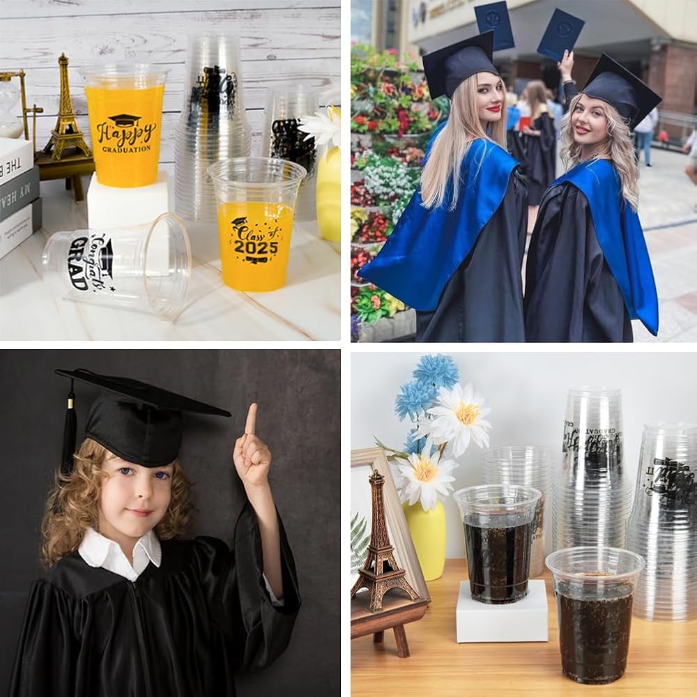 استخدامات واسعة - يمكن استخدام أكواب التخرج البلاستيكية التي تستخدم لمرة واحدة في العديد من المناسبات، مثل حفلات التخرج 2024، وأعياد الميلاد، وأيام ألعاب التخرج للنزهات المدرسية، وغيرها من الأنشطة.