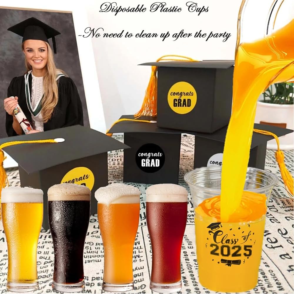 أكواب التخرج البلاستيكية - تتميز أكواب التخرج هذه من فئة 2024 بسعة كبيرة تصل إلى 16 أونصة، وهي خيار مثالي لحفلات التخرج لتقديم المشروبات، ويمكنك اختيارها لشرب الكوكتيل والبيرة والعصير وما إلى ذلك.