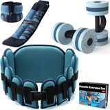مجموعة كومبو الكل في واحد: تحتوي مجموعة معدات تمارين حمام السباحة هذه على جميع الأدوات الأساسية التي تحتاجها لممارسة التمارين المائية. يتضمن وزنين مائيين من إسفنج EVA عالي الكثافة، وحزام سباحة واحد، ووزنين للكاحل المائي.