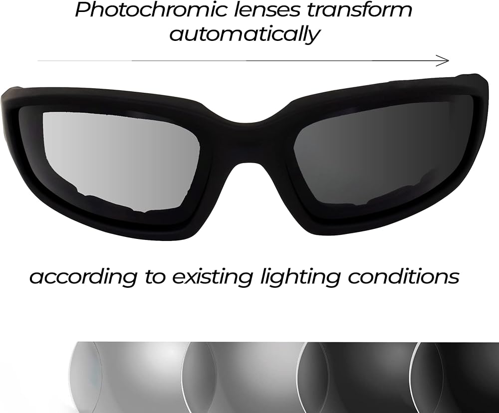 Kickback PHOTOCHROMIC - عدسات تعديل الضوء - نظارات شمسية مبطنة برغوة EVA للدراجات النارية