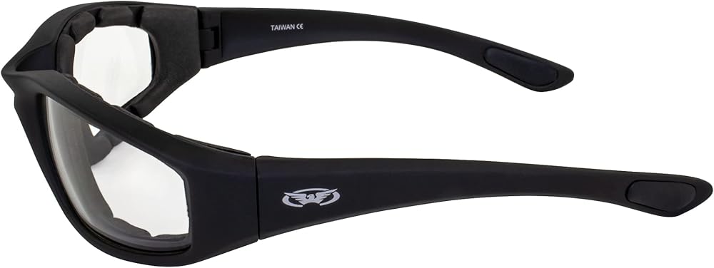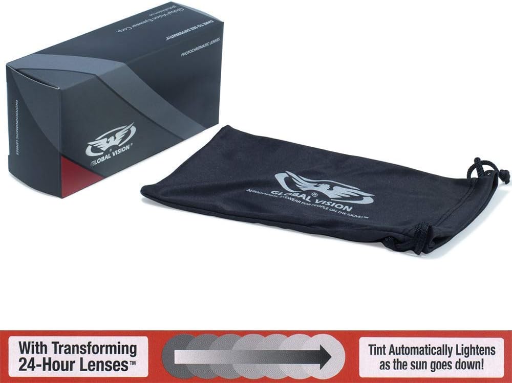 See just as clearly during the night as you do in the daytime with just a single pair of great-looking, super-comfortable Global Vision Kickback 24-Hour Photochromic Clear to Smoke Transition Lenses Motorcycle Safety Sunglasses. When you're out in the sun, the lenses transform from clear to smoke. And as the sun begins to fade, the lenses lighten as they adjust to the fading light and become completely clear once its completely dark. Smoke lenses block bright light that can distract us when we most need to see, like when we're driving, for instance. Thanks to a universal fit, Kickbacks are always secure and comfortable no matter your face shape. Extra soft, ventilated padding keeps you comfortable and shields your eyes from wind and debris. Kickbacks are tough enough to hold up to just about any kind of abuse you can put them through. They're so comfortable that reviewers hardly even know they're wearing them. Enjoy the convenience of photochromic lenses that darken automatically in sunlight and lighten as soon as you're indoors. These safety glasses meet the ANSI Z87.1 standards for use in industrial applications. Shatterproof scratch-resistant polycarbonate UV400 lenses encased in black padded frames offer maximum UV protection. Rubber ear pads keep your glasses perfectly in place and thoroughly comfortable. Oh, and they're pretty good-looking, too. Who said you couldn't have everything you wanted?