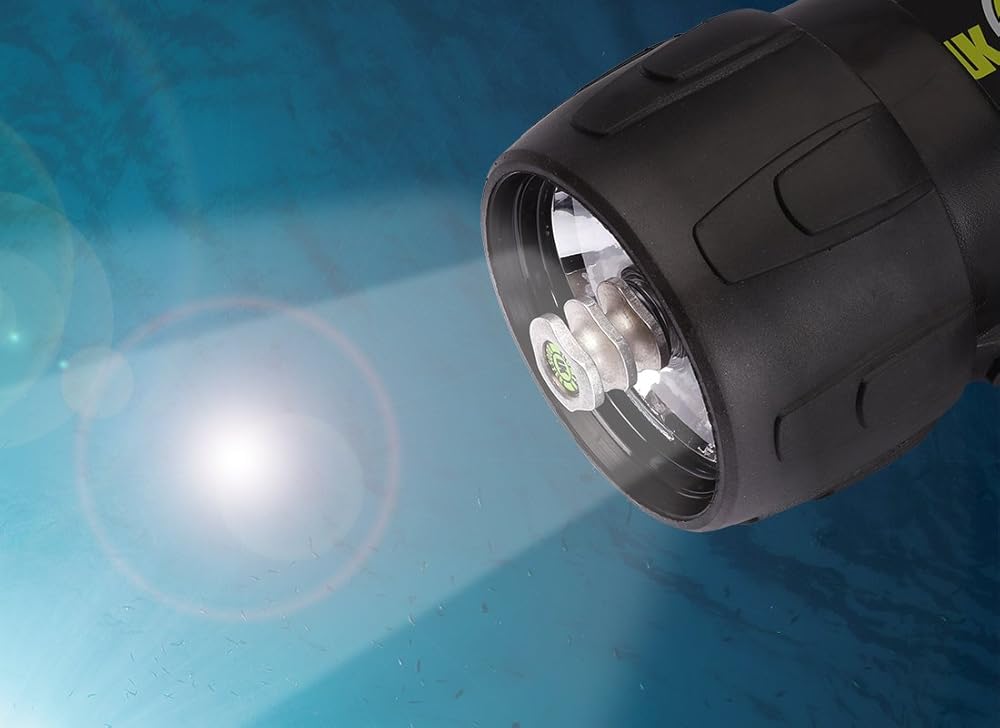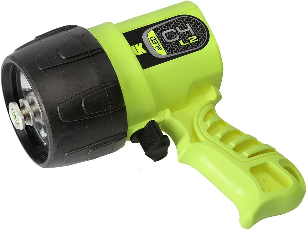 The C4 eLED waterproof light is Underwater Kinetics lightest weight primary light. It is designed to fit smaller hands while still offering brightness comparable to lights twice its size. Its water-cooled heat sink increases brightness underwater and improves burn time. For maximum illumination and a comfortable fit, the C4 is the perfect solution. Unlike the standard glass envelope lamps used since Edison, the LED will not break when dropped. The life expectancy is well over 50,000 hours.