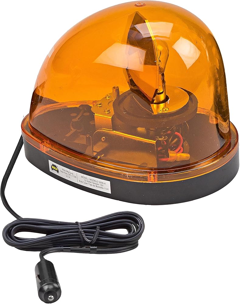 The Wolo 3200-A is a 12-volt extremely bright, teardrop style rotating warning light. The chrome Fresnel reflector magnifies the light making it visible for long distances. Produces 90 flashes per minute. Features a high performance permanent magnet low noise motor. The teardrop lens and base are both made of strong ABS plastic. The base has a powerful protected magnet that will secure the light to any metal surface. Includes a 10 ft. wire with cigarette lighter plug.