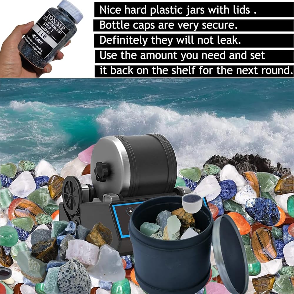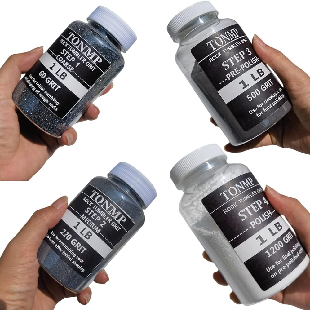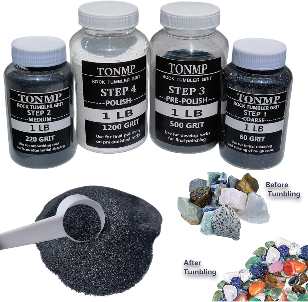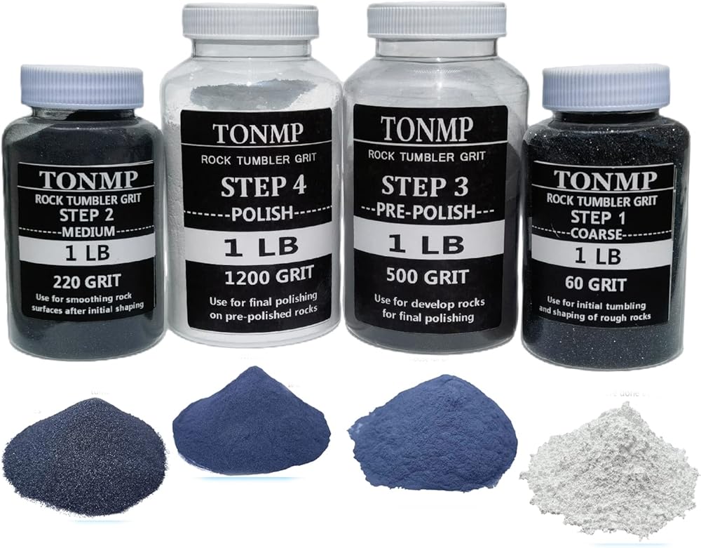 【Large Amount of Grit】This is a large amount of each size grit for the price. This kit contains 1 lbs 60 Coarse Silicon Carbide Grit, 1 lbs 220 Medium Silicon Carbide Grit, 1 lb. 500 Fine Silicone Carbide Grit, 1 lb. 1200 Aluminum Oxide Final Polish Grit. COMPATIBLE WITH ALL BRAND TUMBLERS.