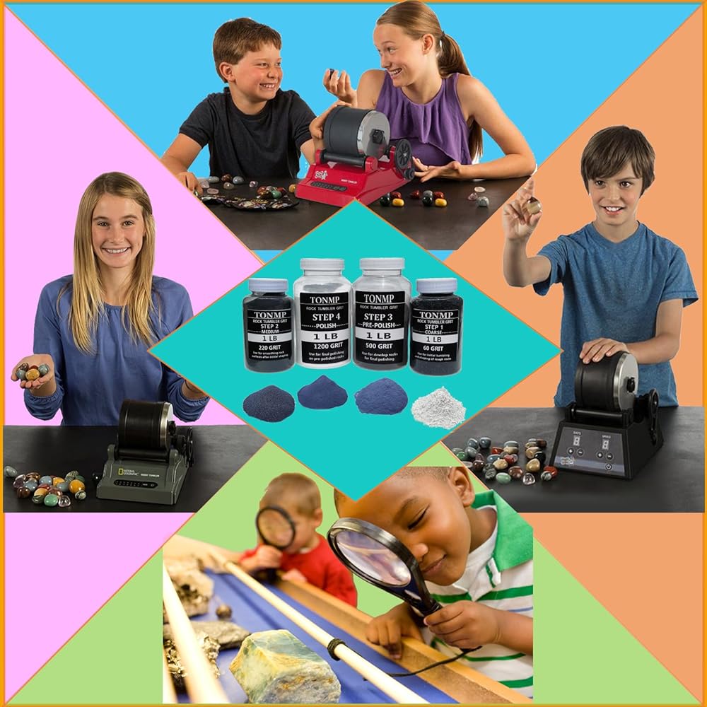4 Step Rock Tumbler Grit Set, Tumbling Media Refill-Coarse / Medium Grit / Pre-Polished / Final Polish, Works with Any Rock Tumbler, Rock Polisher, Stone Polisher